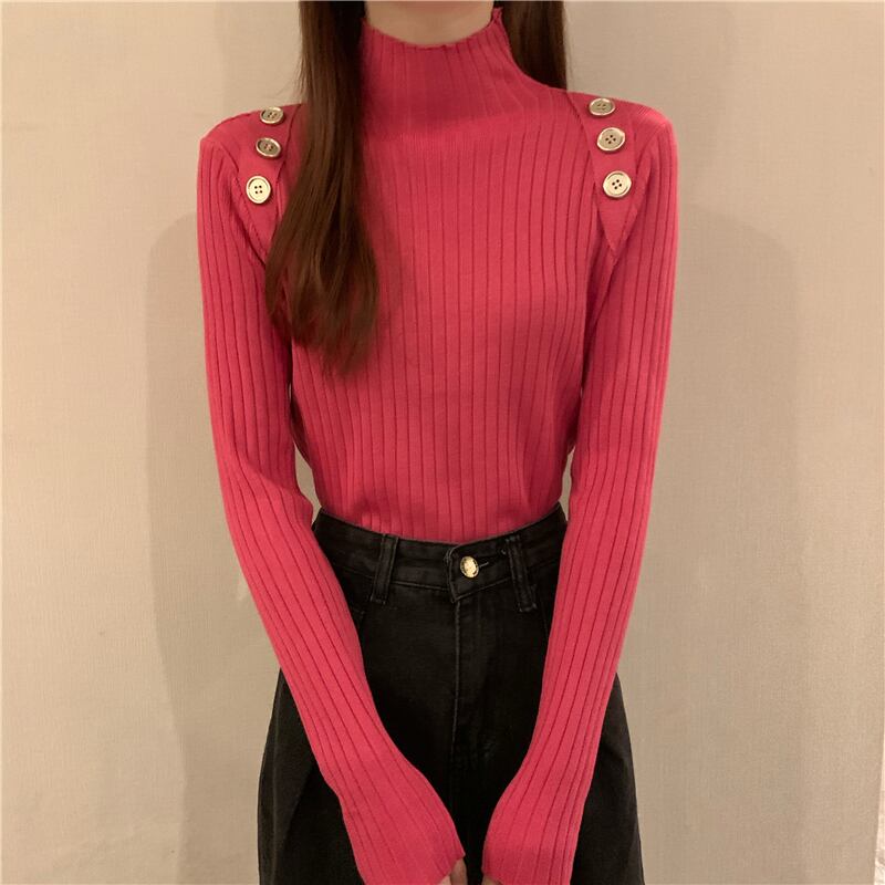 カラーセーター スプリングオータムブラックトップス ロング 春物 秋物 1号婦人84632540734