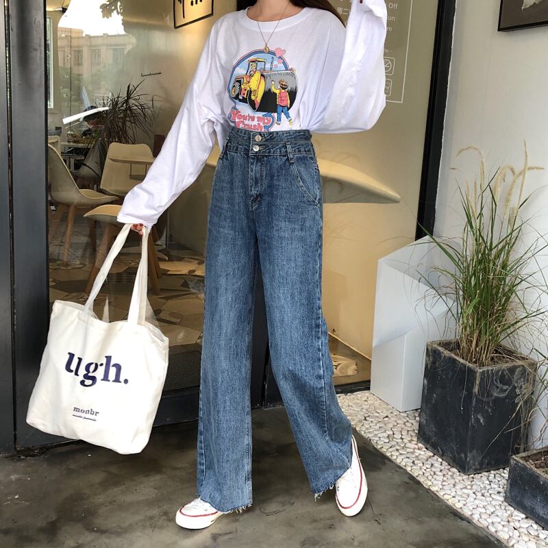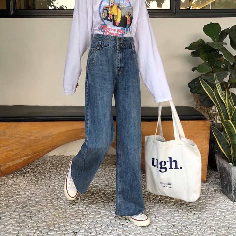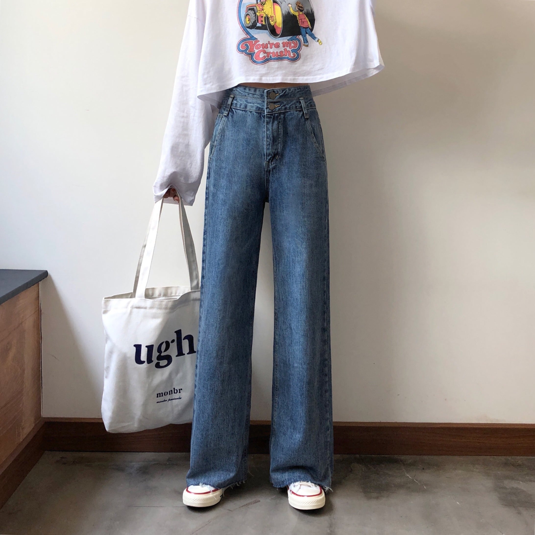 ジーンズ ルーズスプリングオータムウェスト薄手ワイドレッグパンツ ロング 春物 秋物 ワイドパンツ 1号婦人64439181067