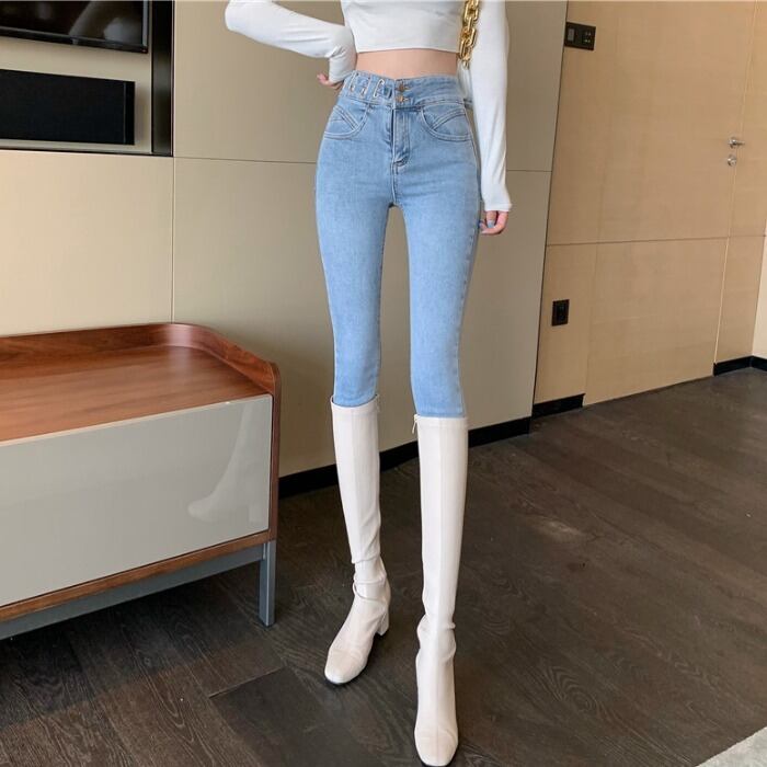 ジーンズ スプリングベルベットハイウェストウェストパンツ 春物 1号婦人27673838876