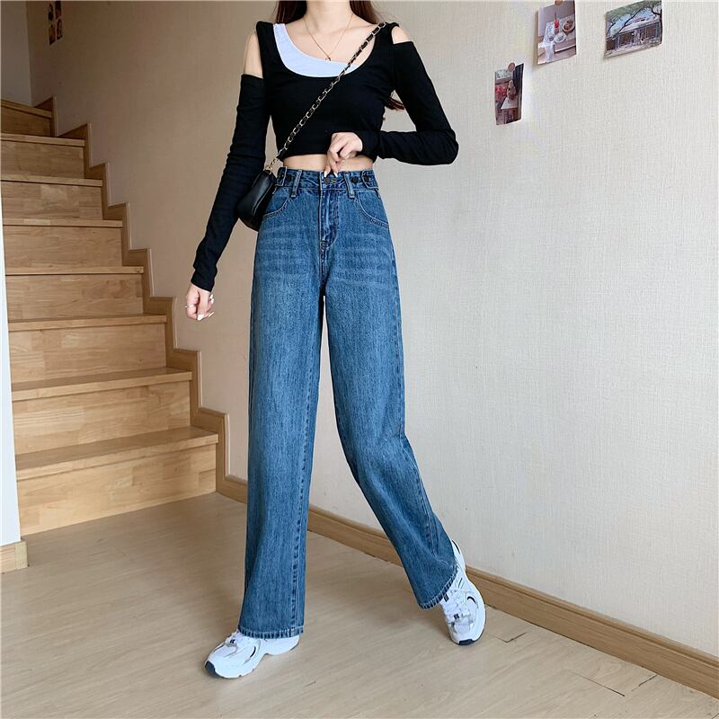 ジーンズ スプリングスタンダードスタイルルーズワイドレッグパンツ ウェスト薄手 レトロ 春物 ワイドパンツ 1号婦人98632195460