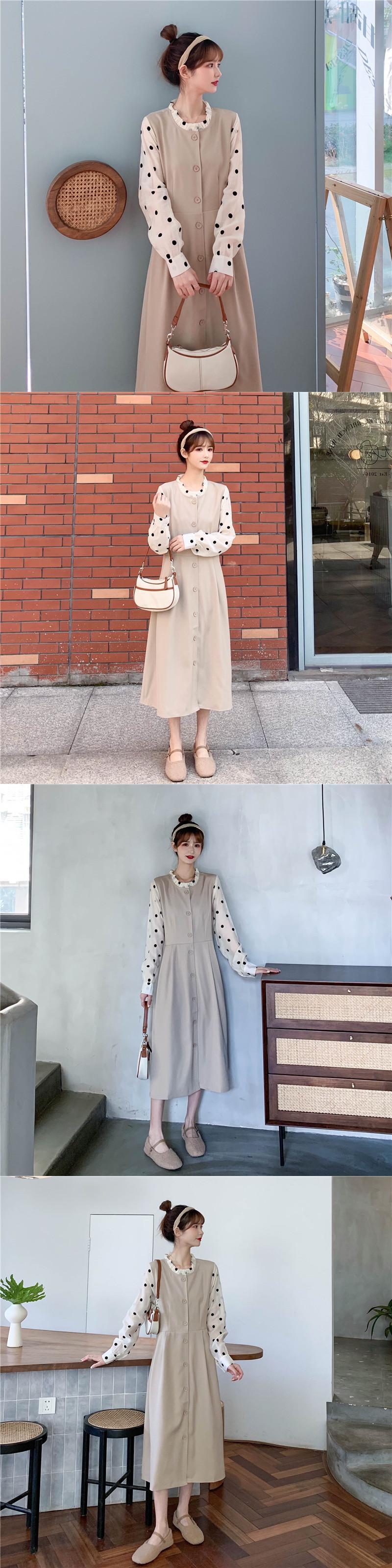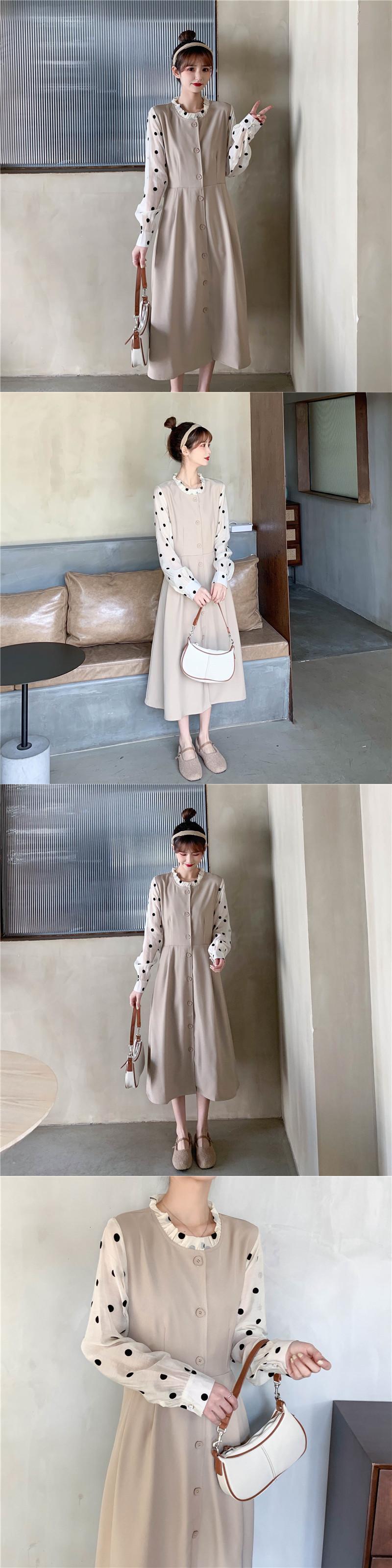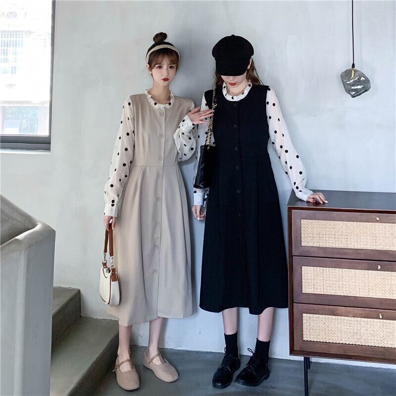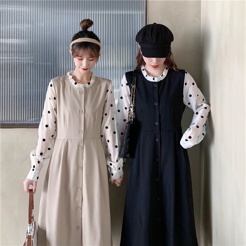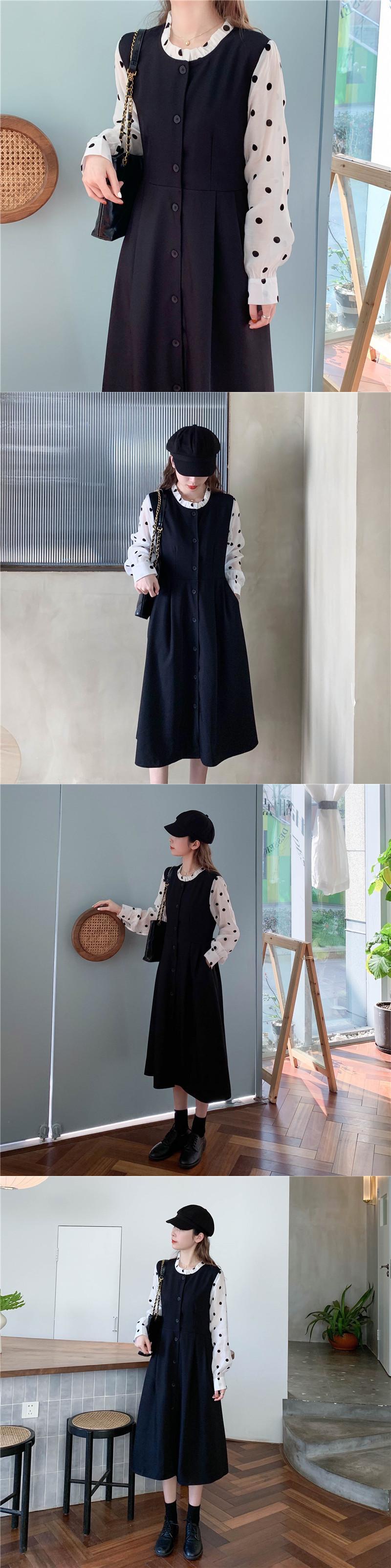 スタンダードカラードレス スプリングウェストロングブラックスカート レトロ 春物 1号婦人42729873468