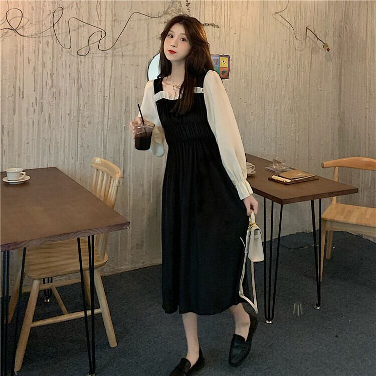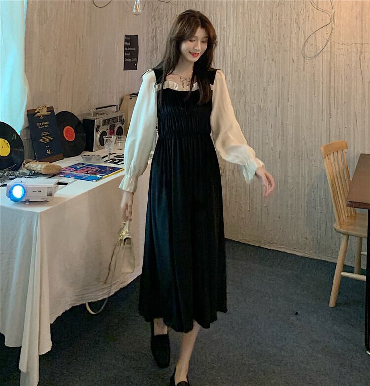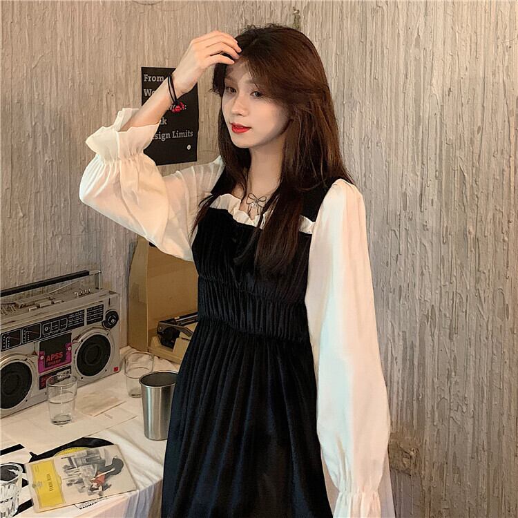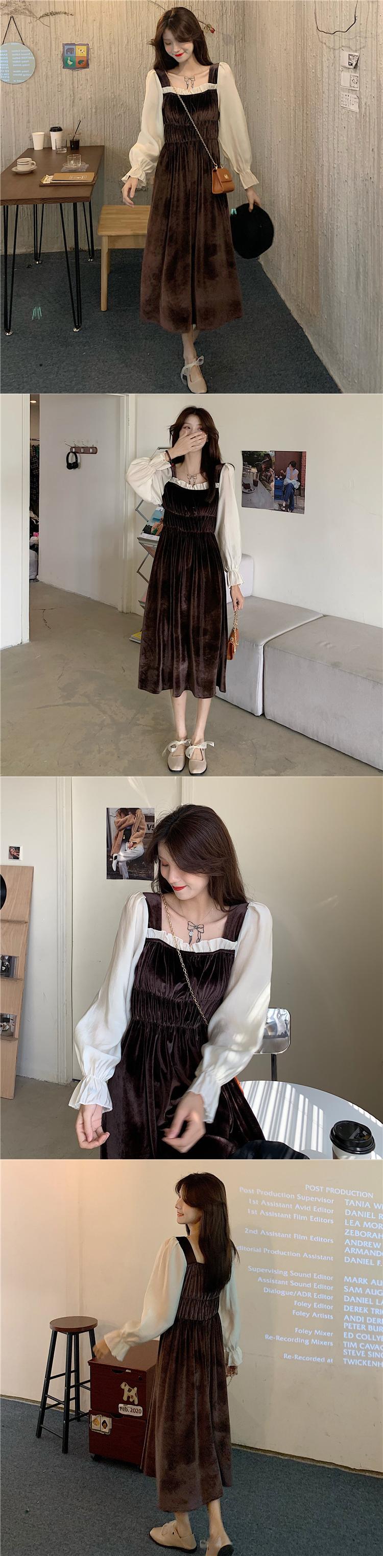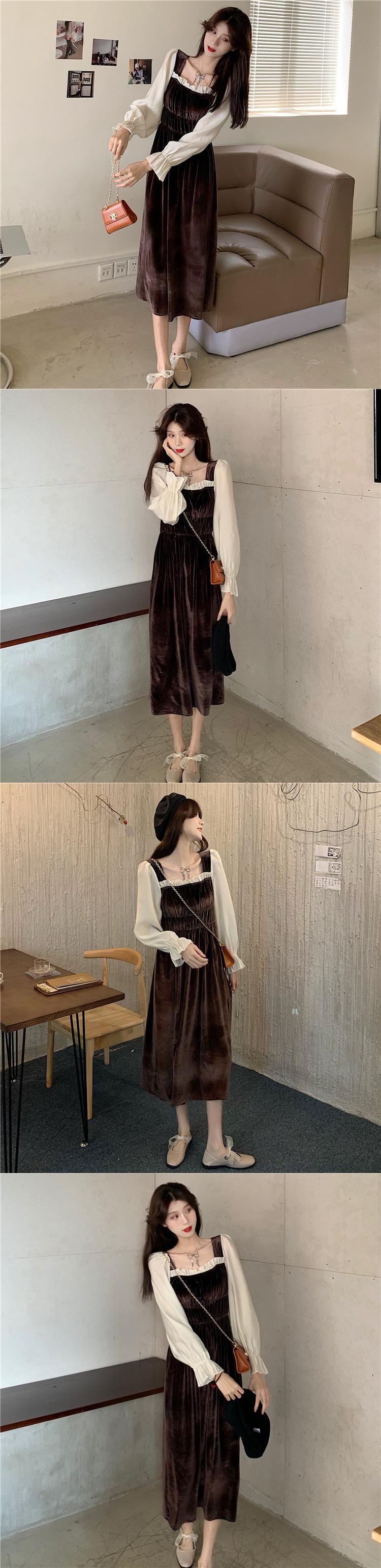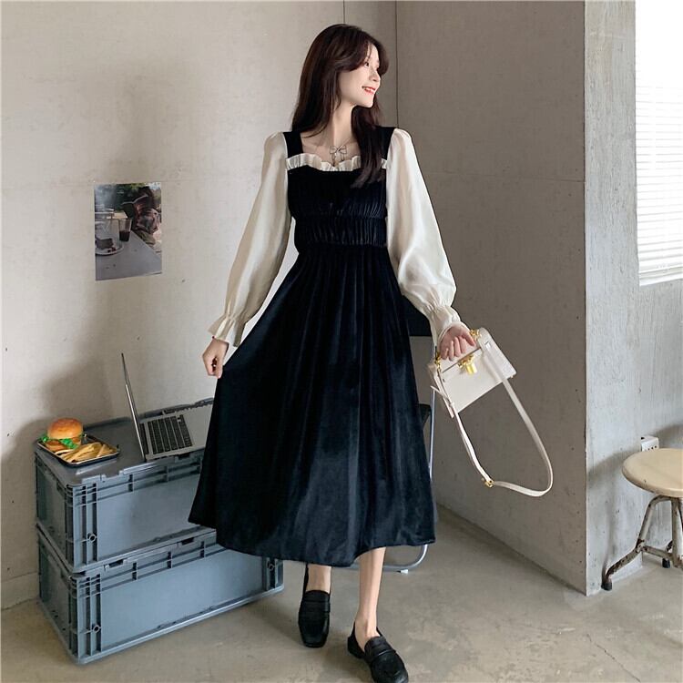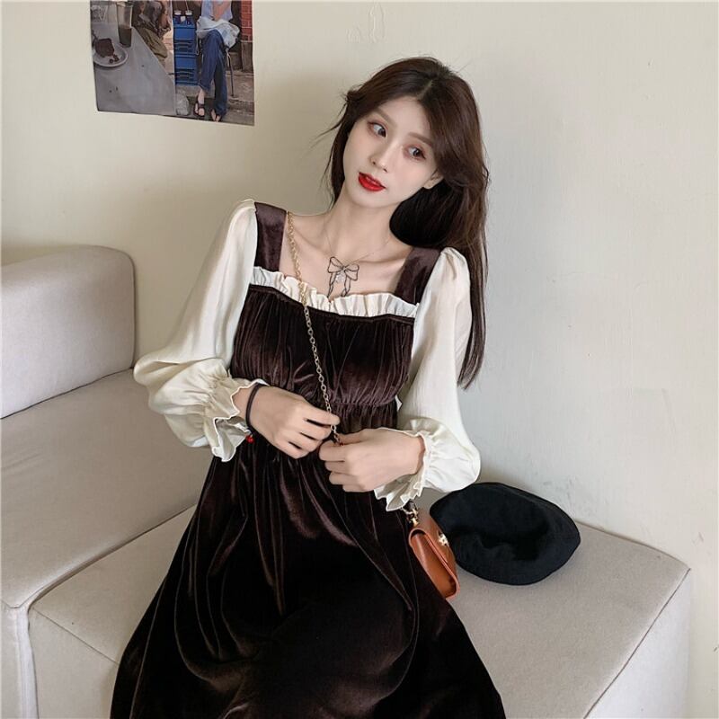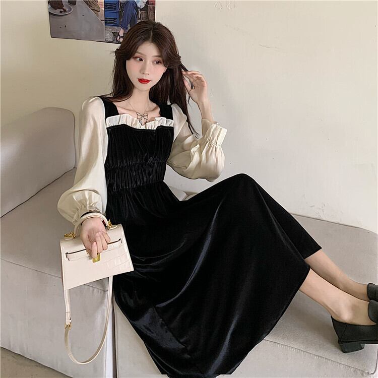 スプリングオータムスリーブドレス ウィンタースタンダードゴールドベルベットスカート レディース ロング レトロ 春物 秋物 冬物 1号婦人56975916726