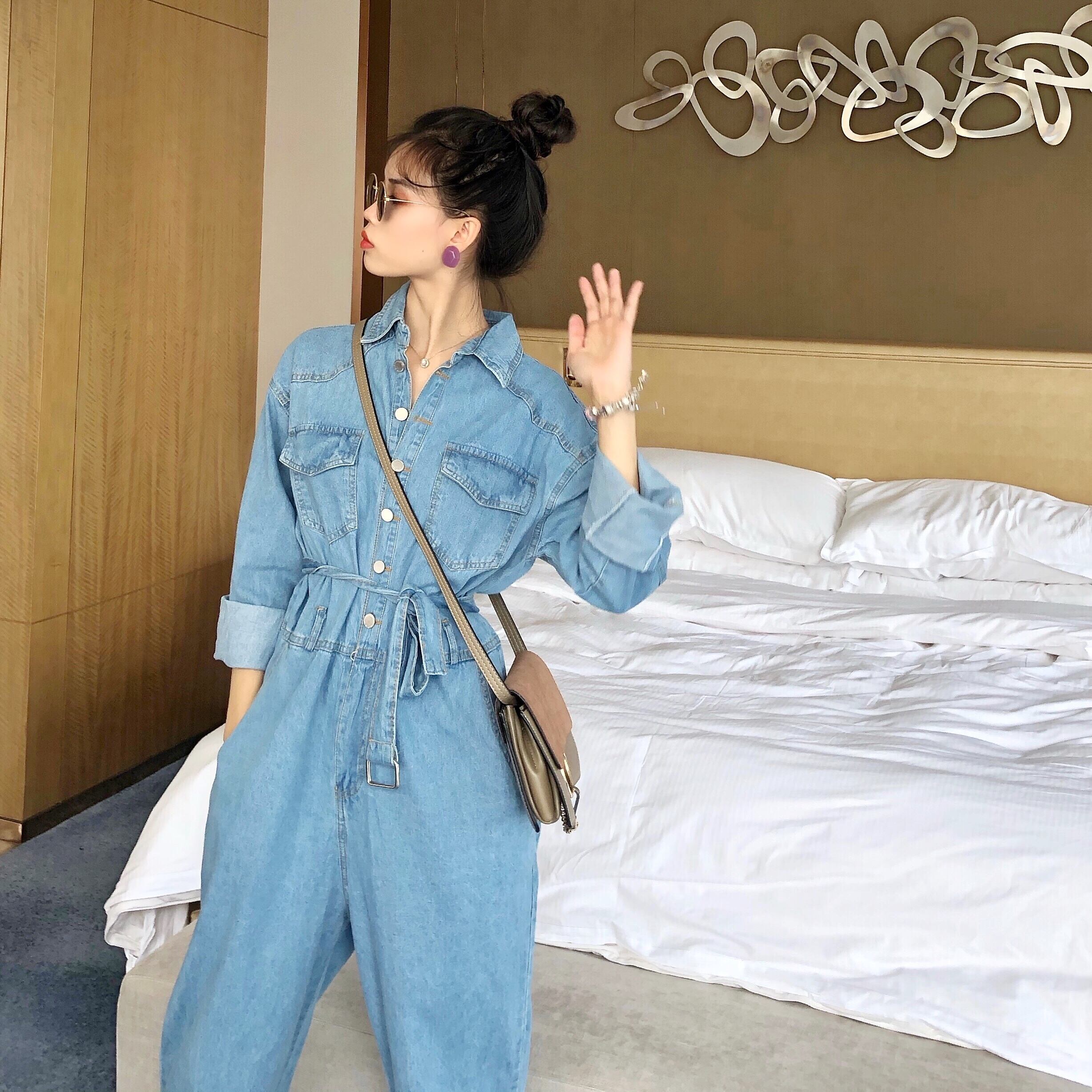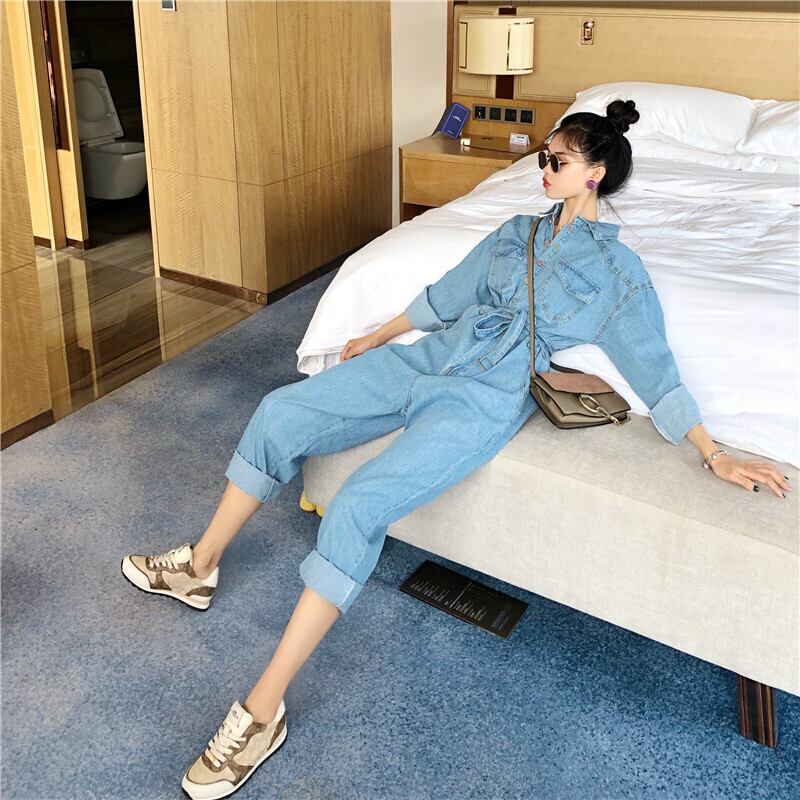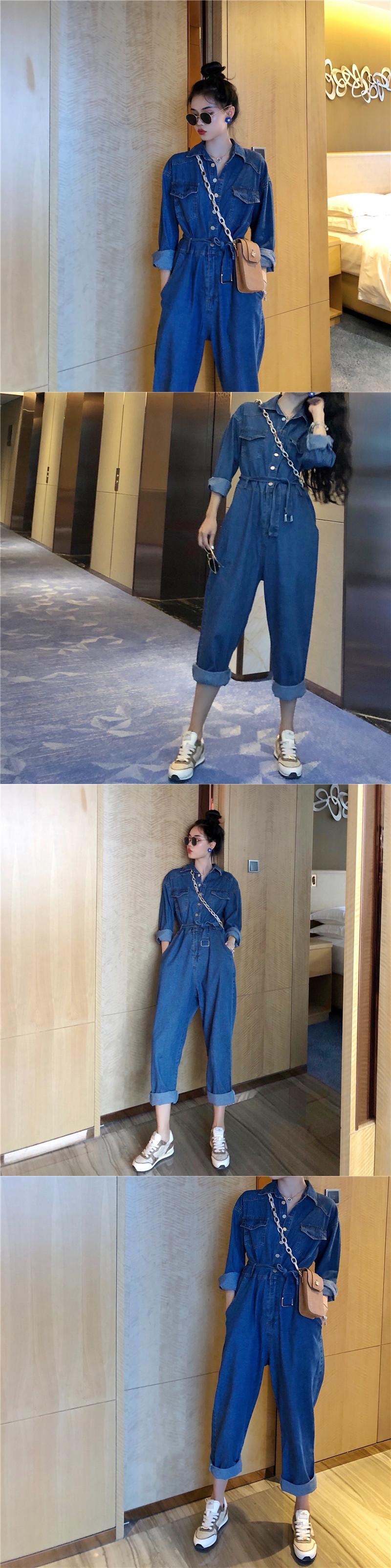 ジーンズ スプリングオータムジャンプスーツ オールインワン ポケットルーズパンツ ロング 春物 秋物 1号婦人82052934661