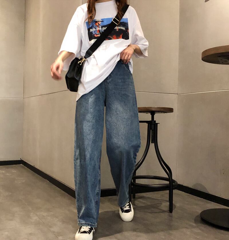 スタンダードジーンズ スプリングハイウェストウェスト薄手ワイドレッグパンツ レトロ 春物 ワイドパンツ 1号婦人6310977778