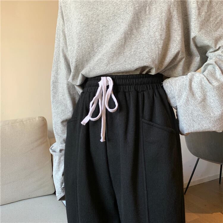 パンツ スプリングオータムスタイルギャザーハイウェストウェスト薄手ルーズカジュアル 春物 秋物 1号婦人42995261540