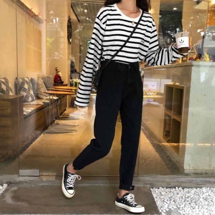 ジーンズ スプリングハイウェストウェスト薄手パンツ ルーズ 春物 1号婦人99010505184