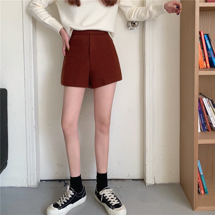 パンツ スプリングオータムハイウェストコーデュロイルーズカジュアルショーツ 春物 秋物 ブルマー 1号婦人60389676414