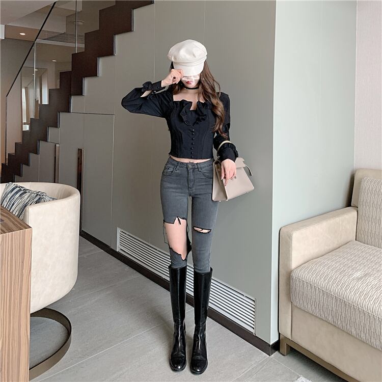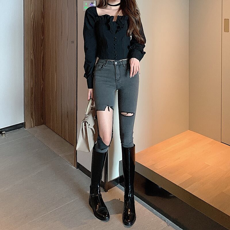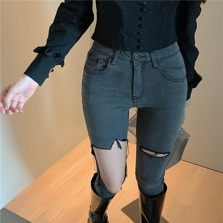 ジーンズ スプリングストレッチスキニーパンツ チェーン エラスティック 伸縮 春物 1号婦人37257849607