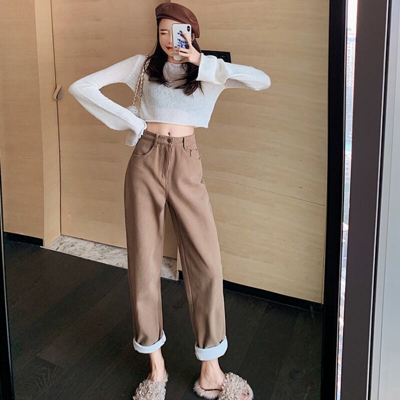 ベルベットジーンズ ウィンターパンツ ルーズハイウェストウェスト 冬物 1号婦人74139482054