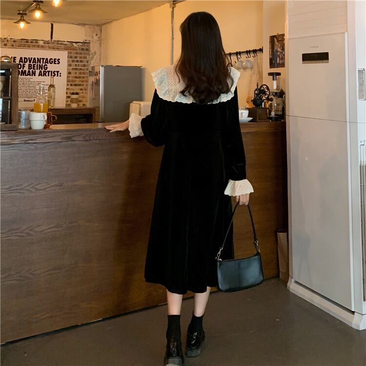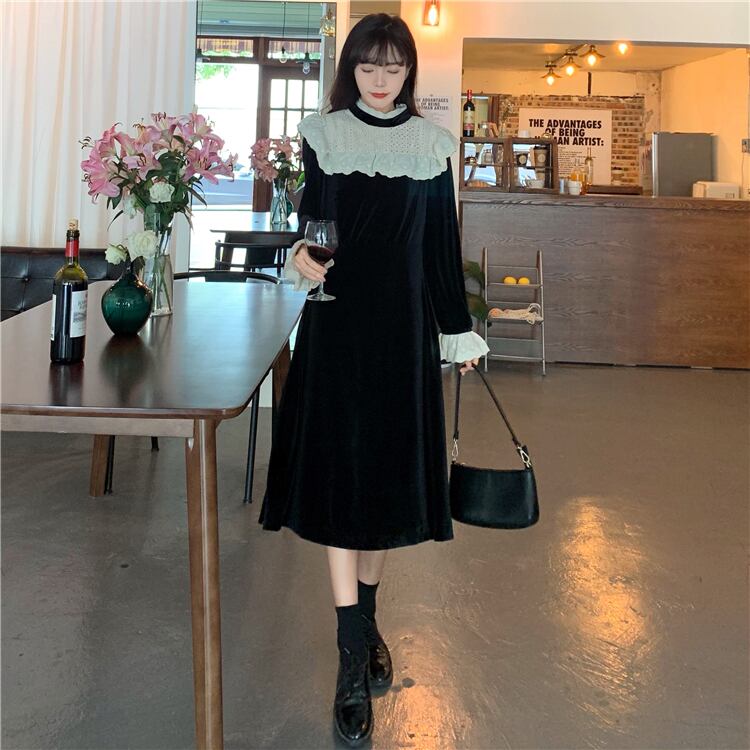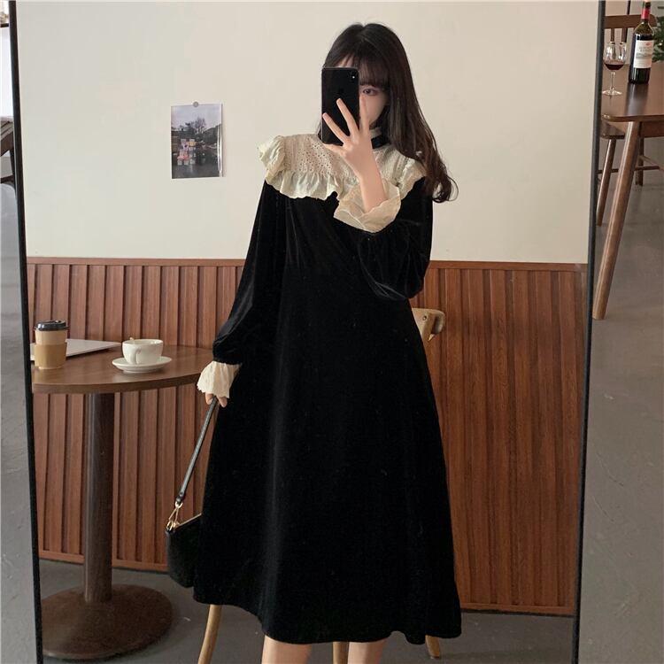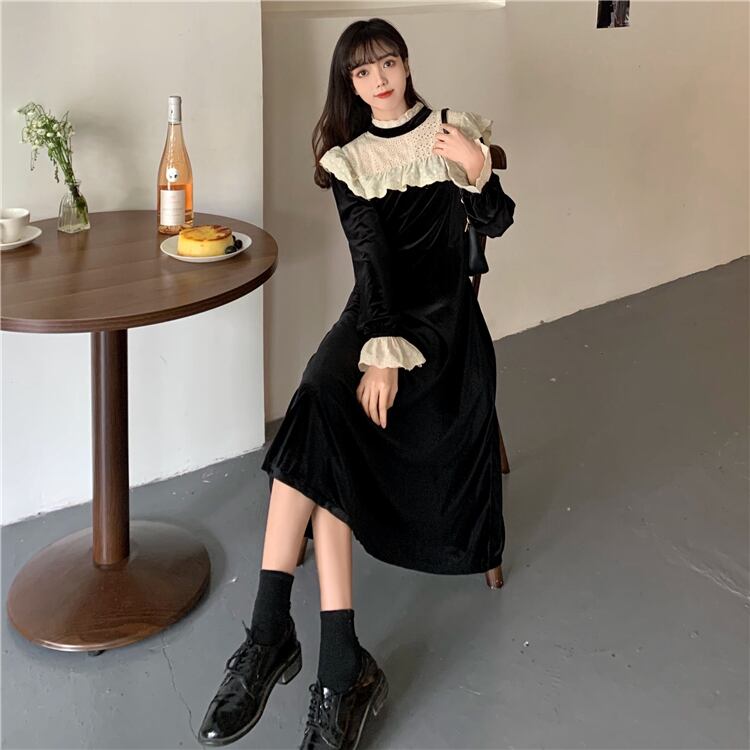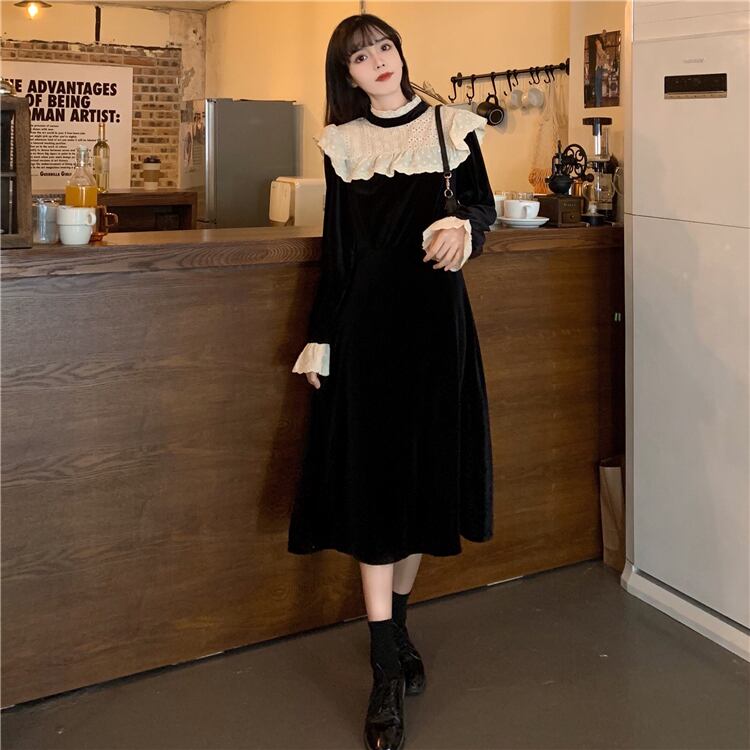 スプリングドレス ワンピース スタンダードブラック薄手Aラインスカート レトロ 春物 1号婦人17581045806