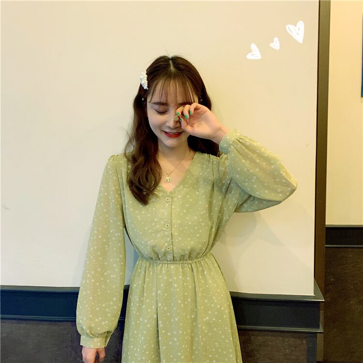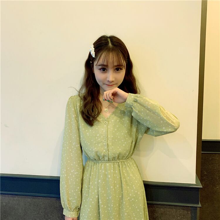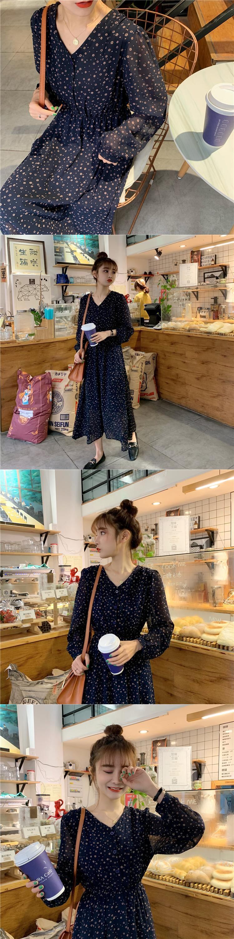 スプリングシフォンフローラルドレス スタンダードVネックAラインスカート ロング レトロ 春物 花柄 1号婦人17095369540