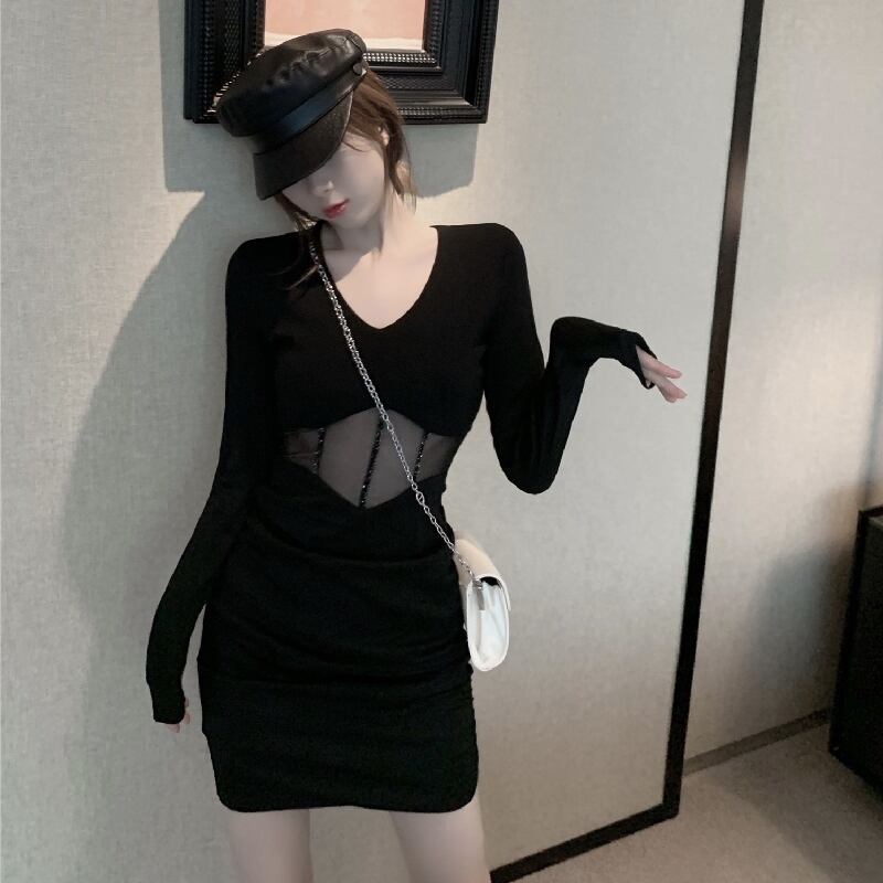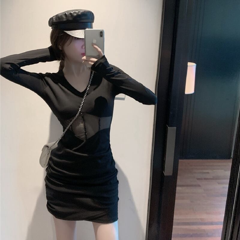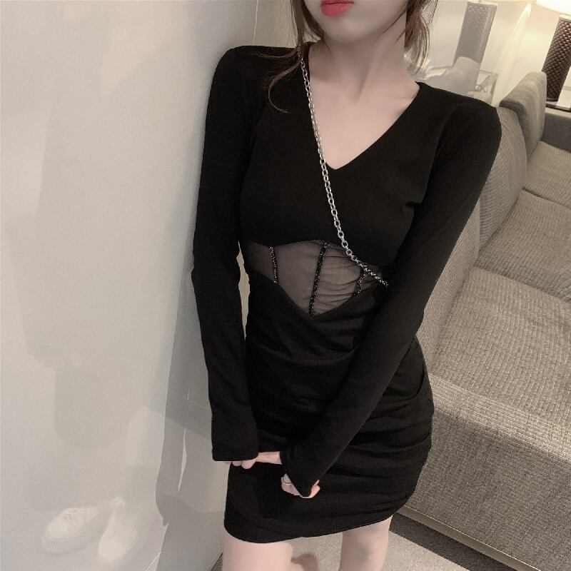 スプリングドレス Vネックプリーツメッシュスカート ロング 春物 1号婦人71401984328