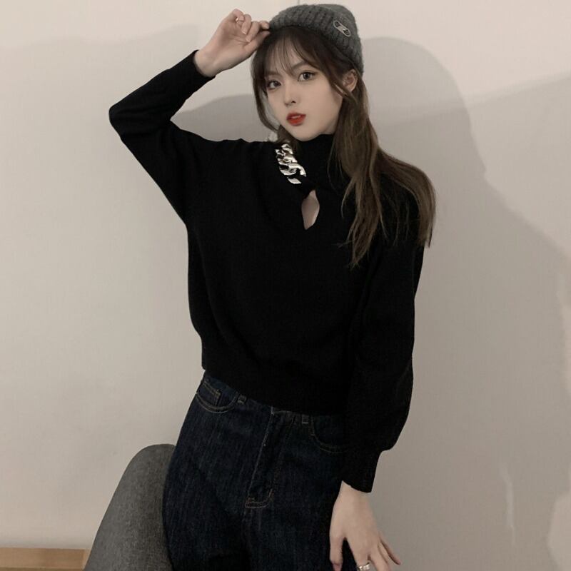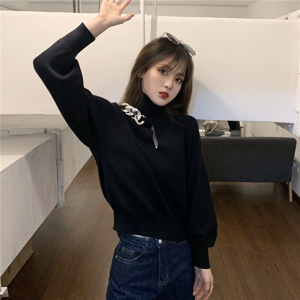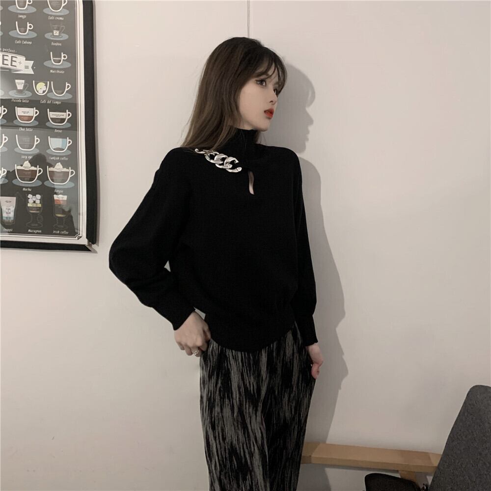 チェーン ニットセーター スプリングオータムスタイル長袖スリーブトップス ロング 春物 秋物 1号婦人93685982945