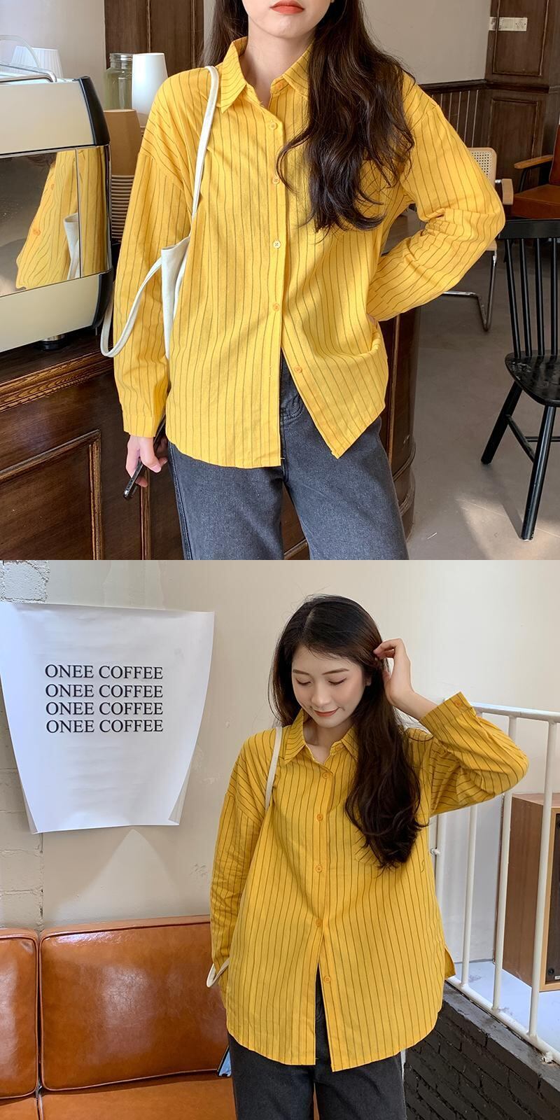 シャツ スプリング薄手ルーズストライプジャケット ロング 春物 1号婦人29095269901