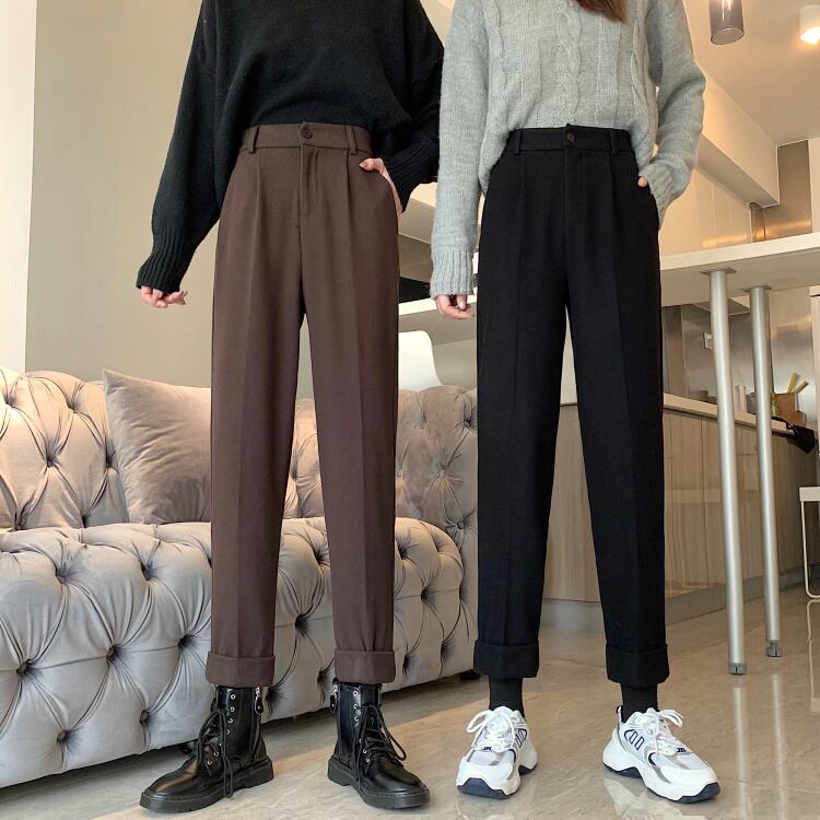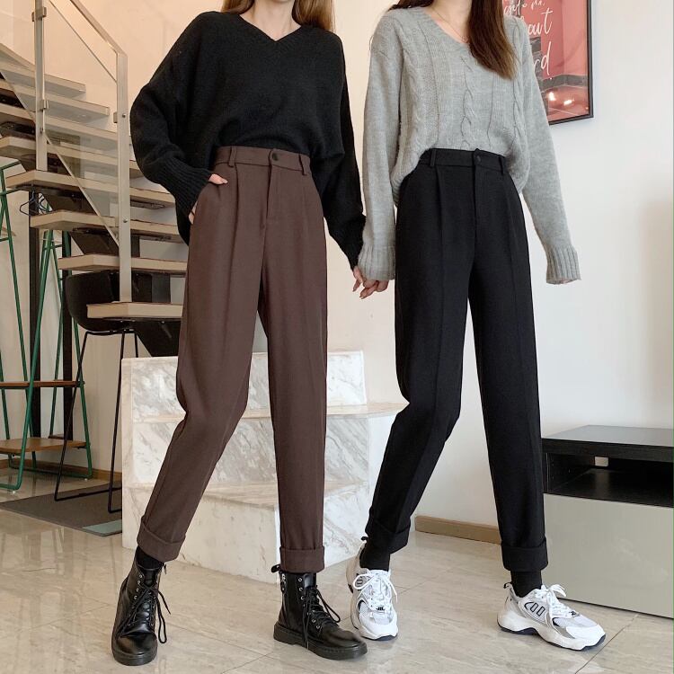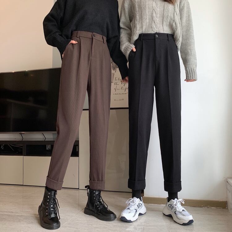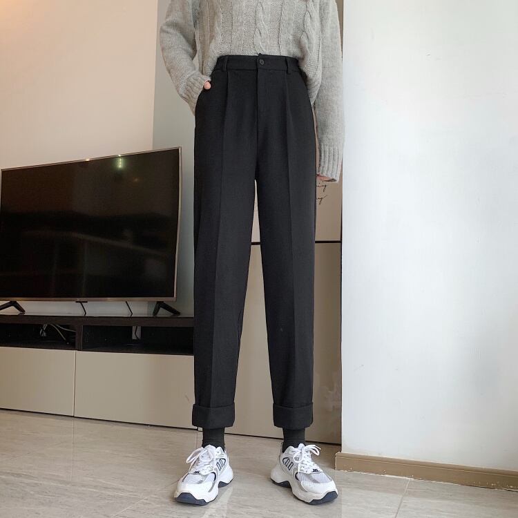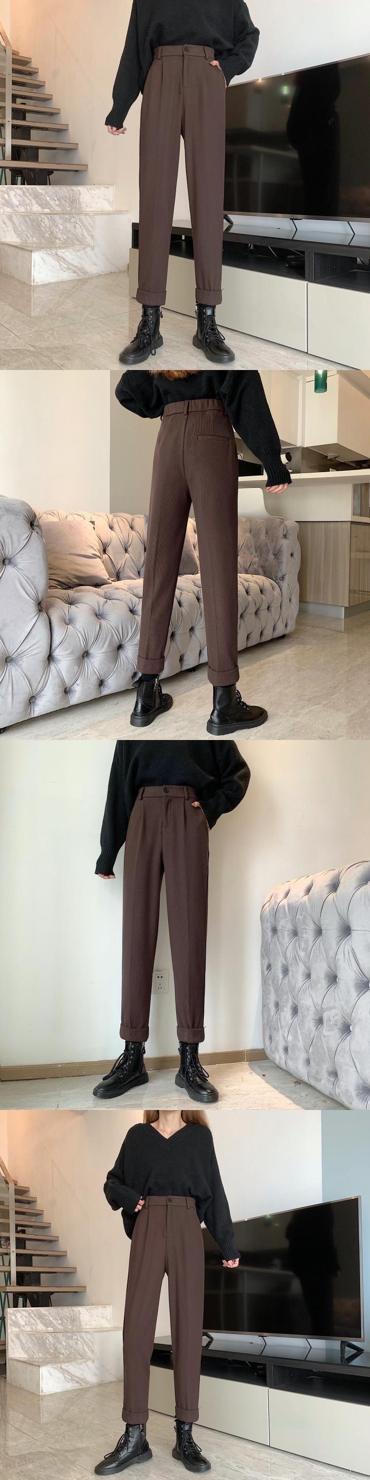 コーデュロイカジュアルパンツ スプリングオータムハイウェスト薄手ルーズ 春物 秋物 1号婦人24365693580