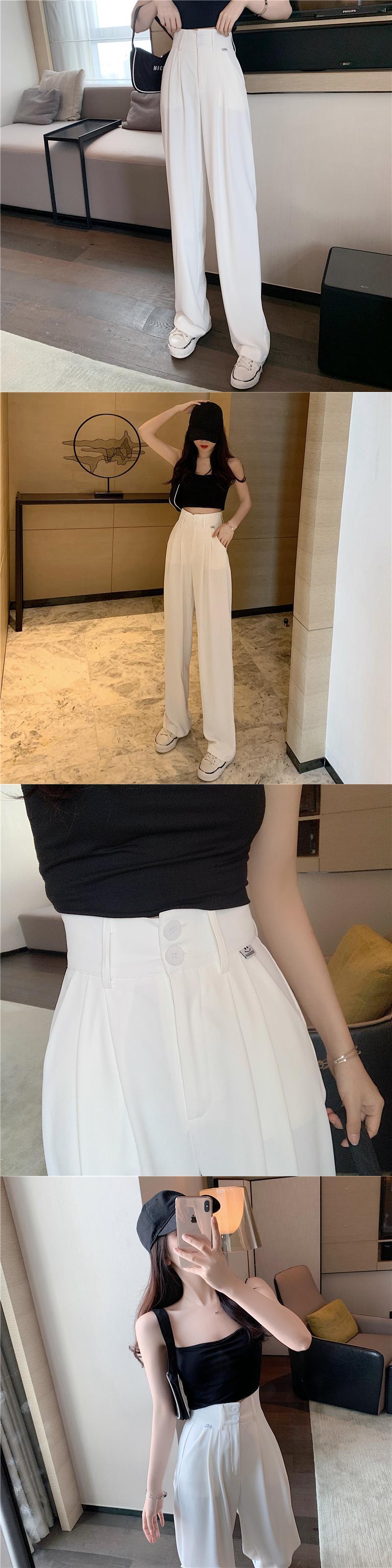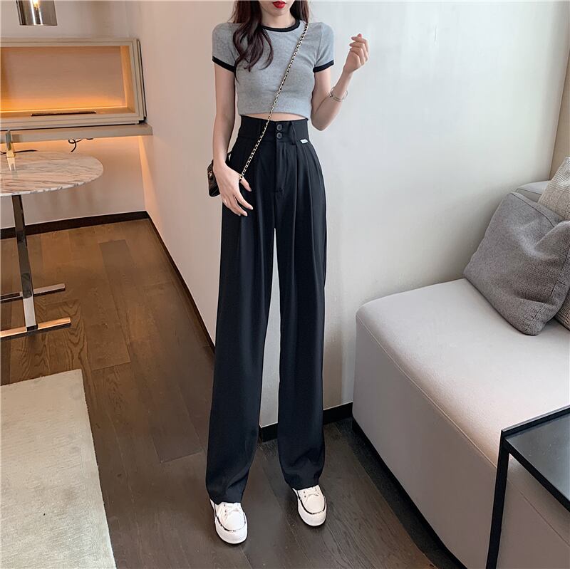 ブラックパンツ スプリングハイウェストウェストワイドレッグルーズカジュアルロング 春物 ワイドパンツ 1号婦人29768185242
