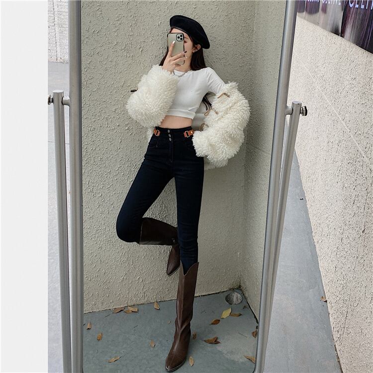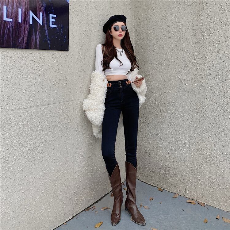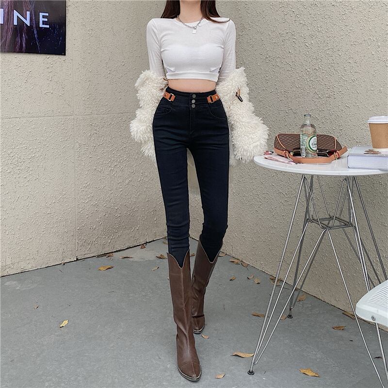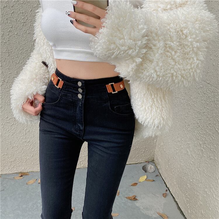 ハイウェストウェストジーンズ スプリングオータム薄手パンツ ストレッチ エラスティック 伸縮 春物 秋物 1号婦人32625614083