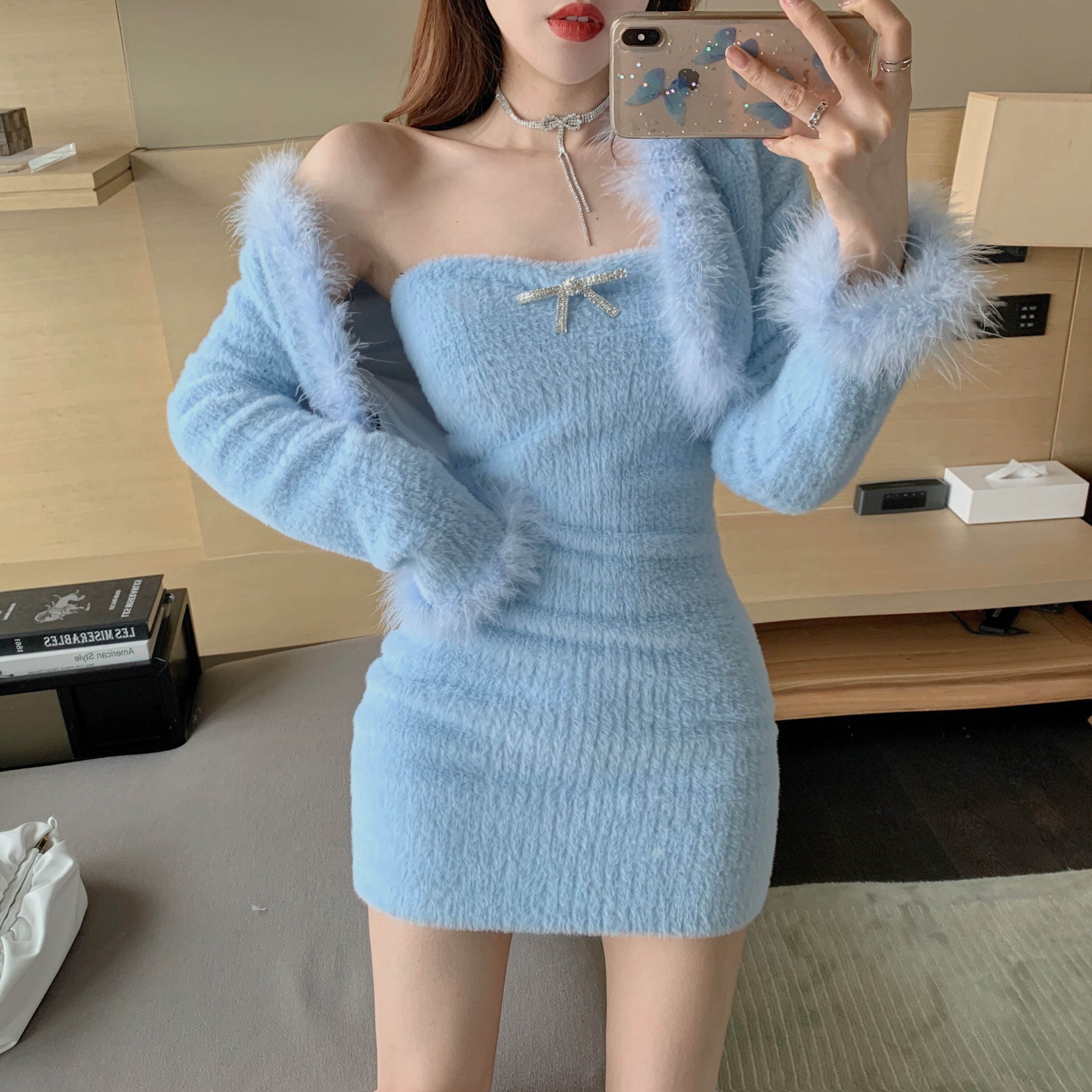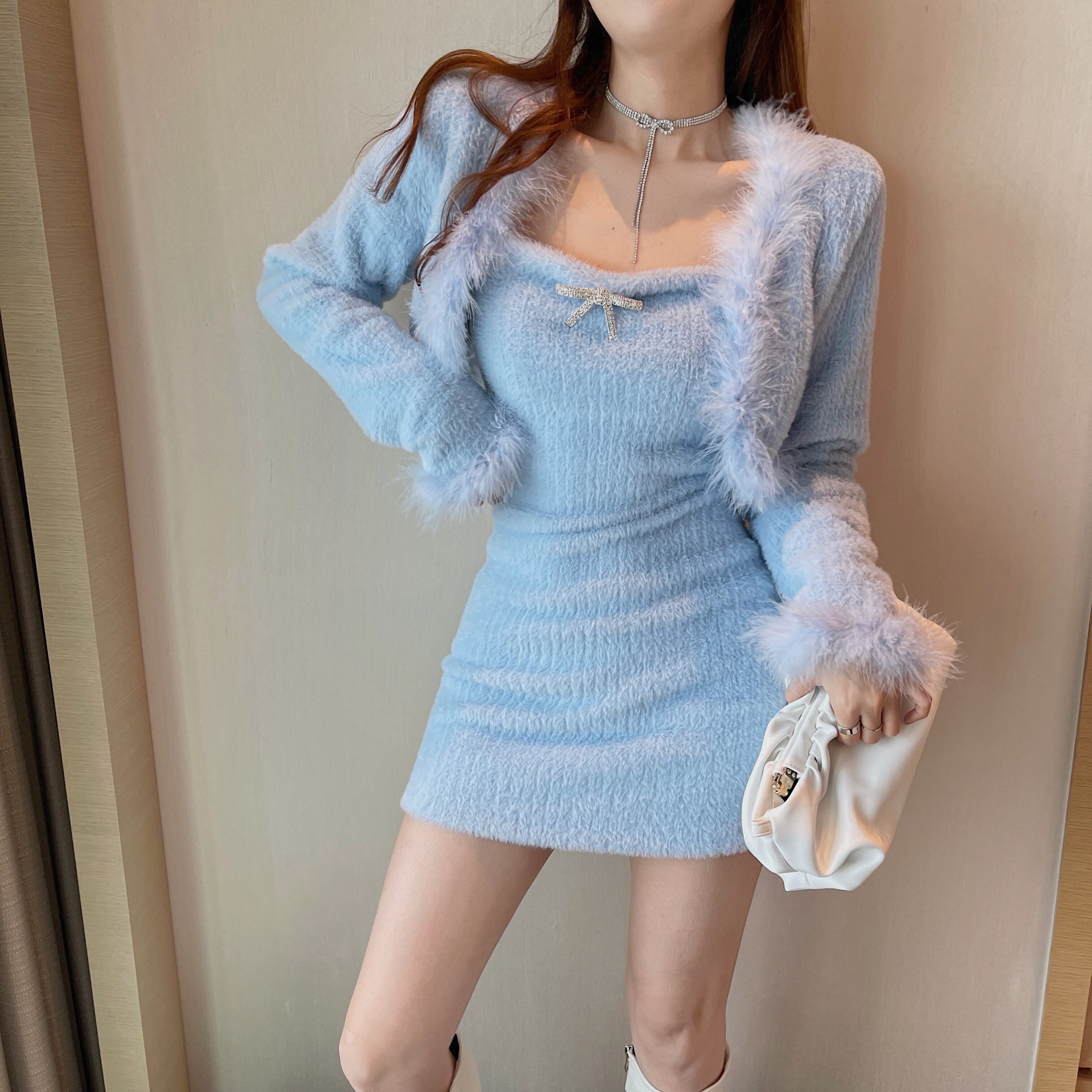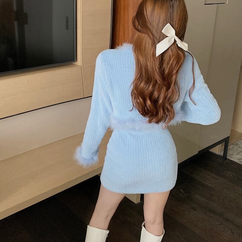 色:青いベスト,アプリコットベスト,ブルーカーディガン,アプリコットカーディガン