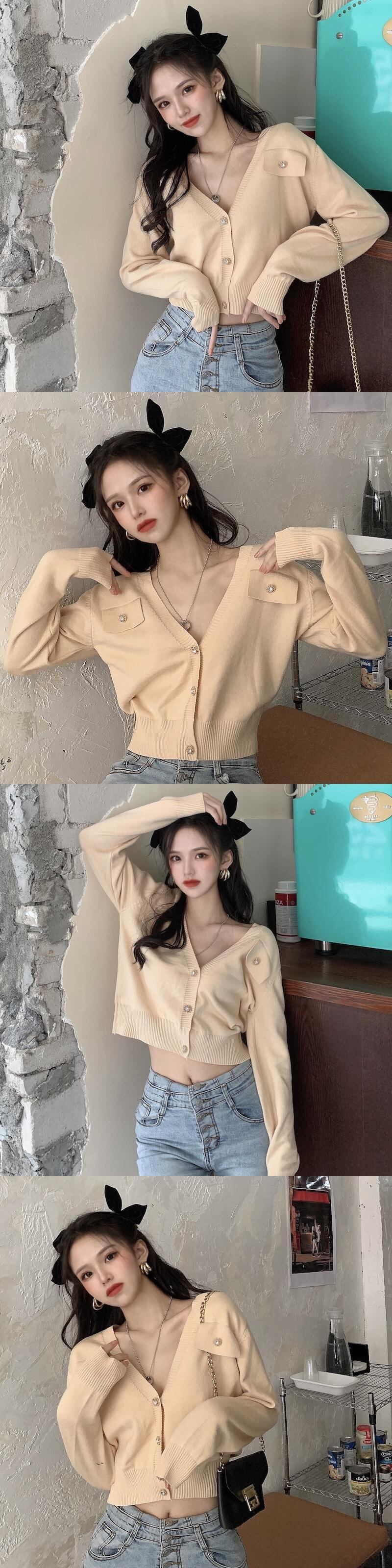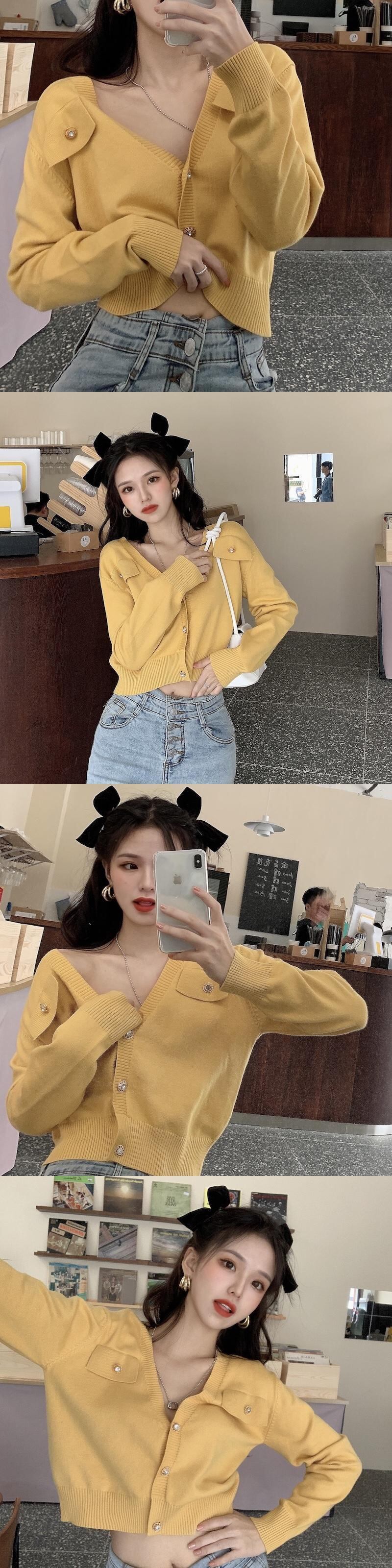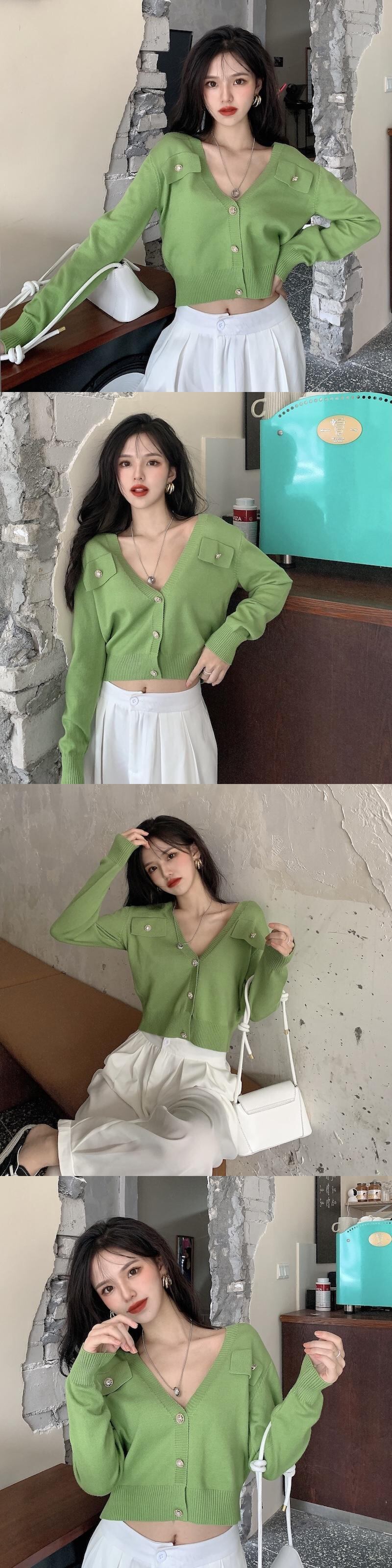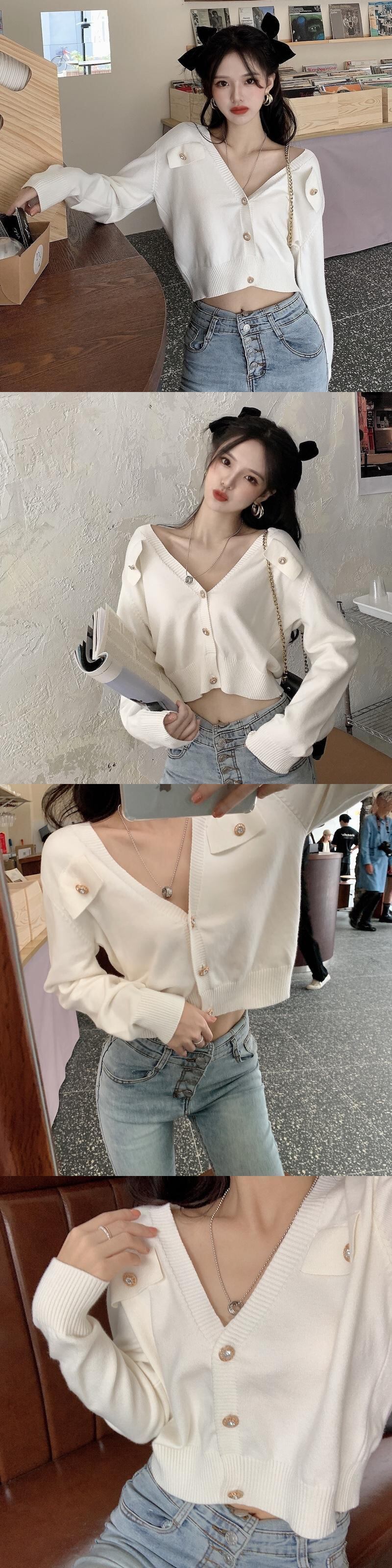 Vネックホワイトショートニットカーディガンスプリングオータムルーズスタイルジャケット トップス ロング 春物 秋物 1号婦人30752083359