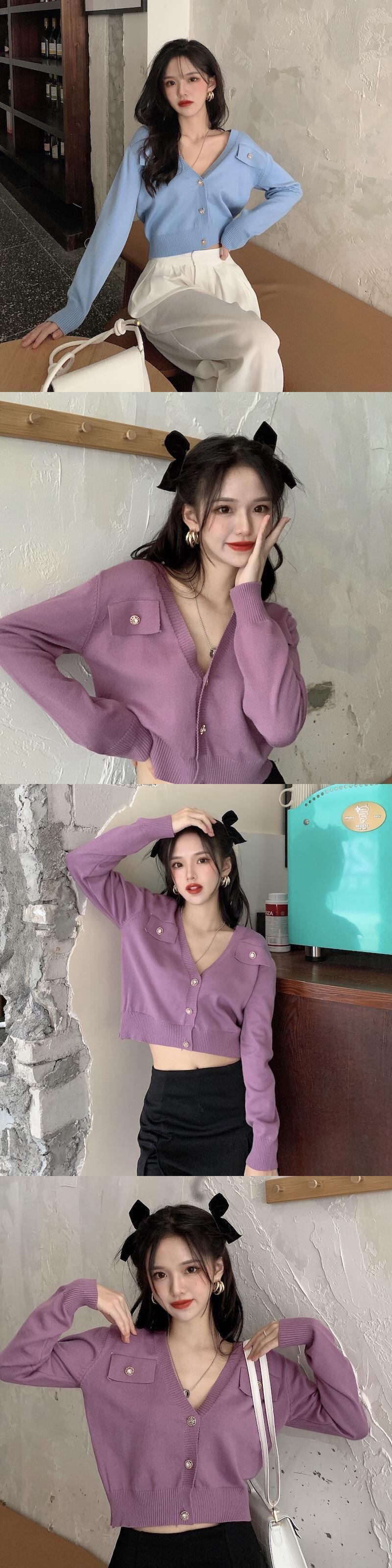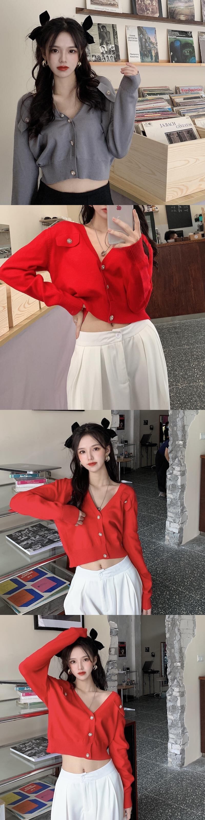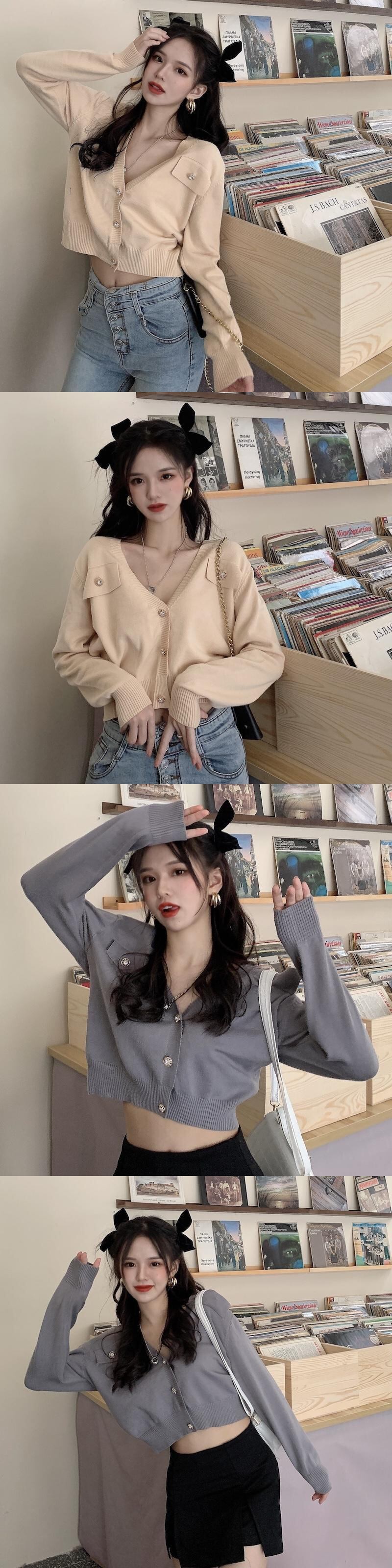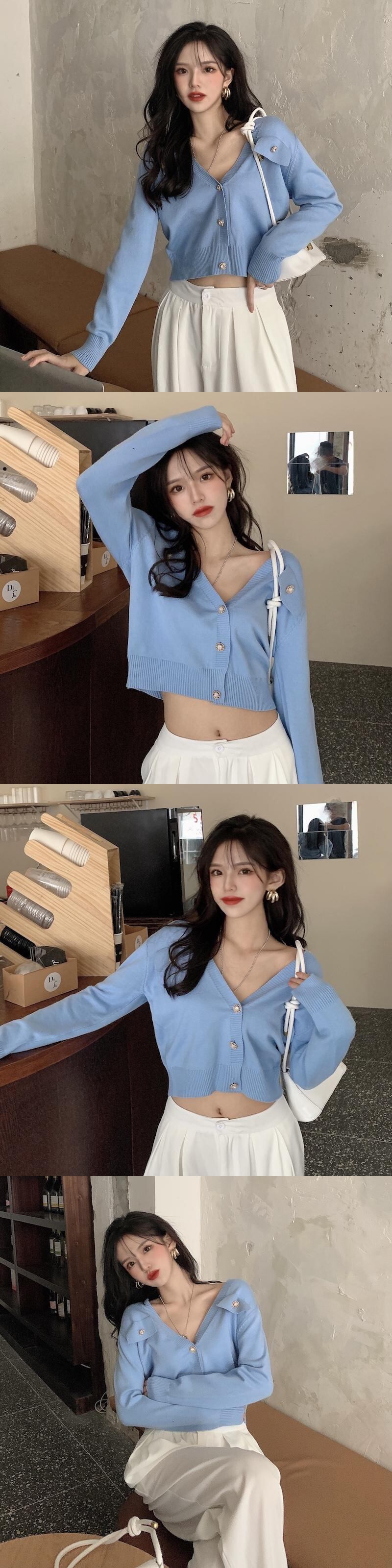 Vネックホワイトショートニットカーディガンスプリングオータムルーズスタイルジャケット トップス ロング 春物 秋物 1号婦人30752083359