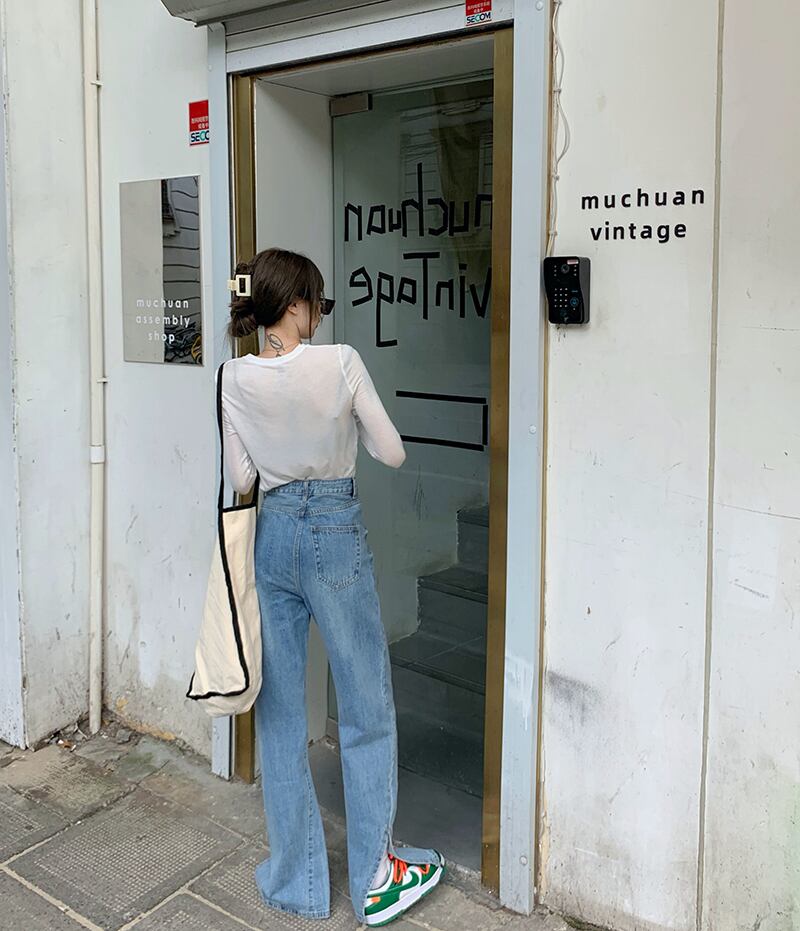 ジーンズ スプリングオータムハイウェストウェストルーズパンツ 春物 秋物 1号婦人70436818834