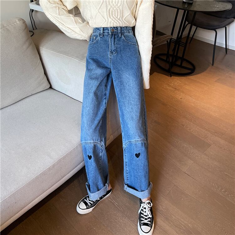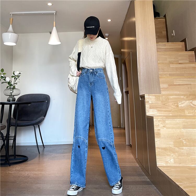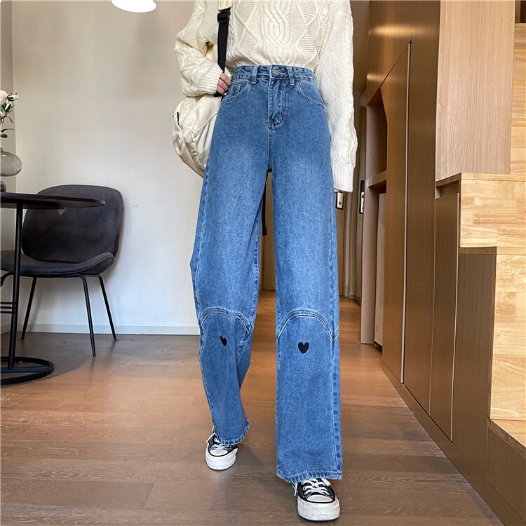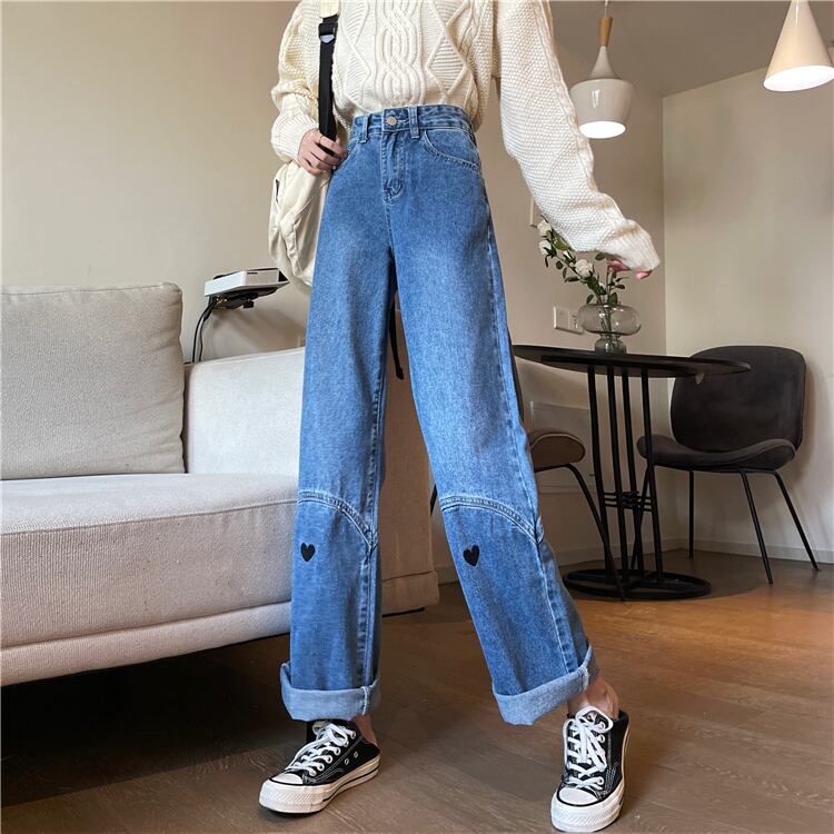 パンツ 刺繍ハイウェストウェストスタンダードスタイルルーズジーンズ レトロ 1号婦人57801169012