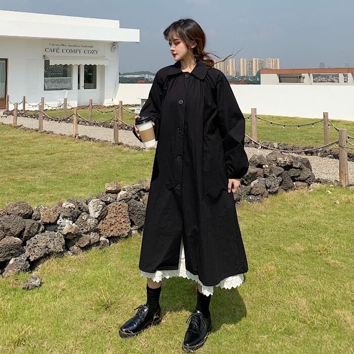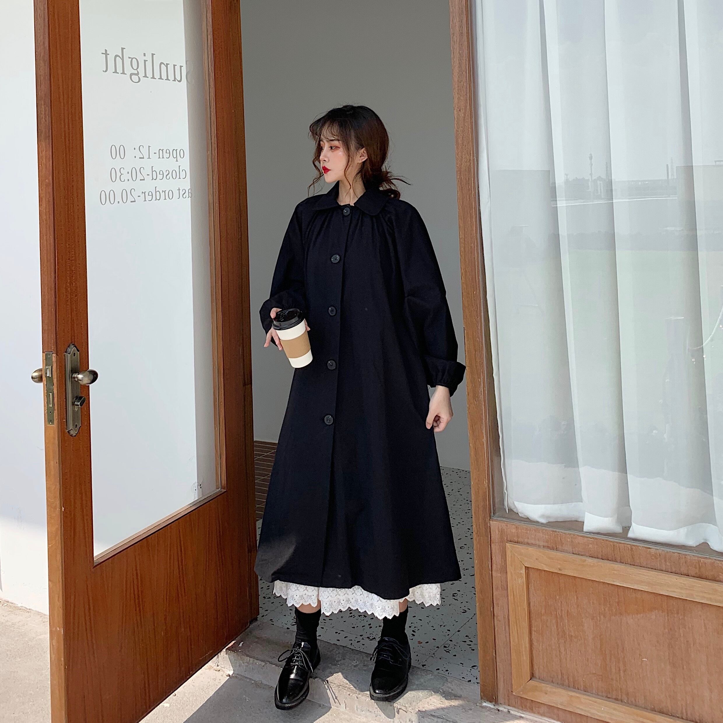 スプリングジャケット レディーススタイルロングブラック長袖スリーブコート 春物 1号婦人63984873204