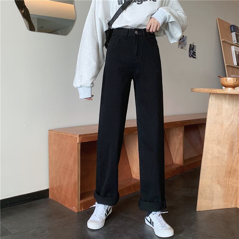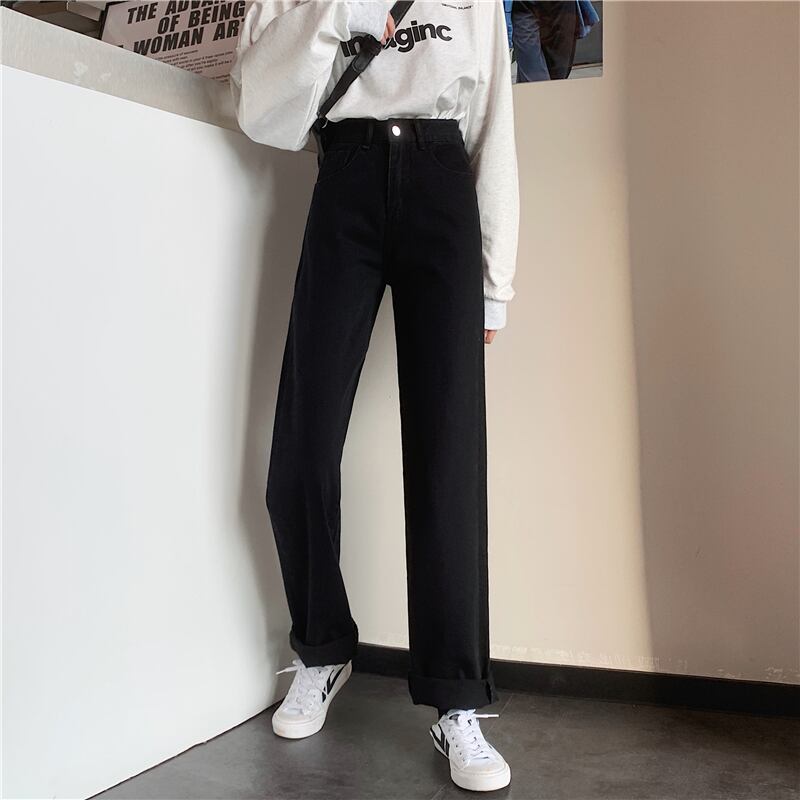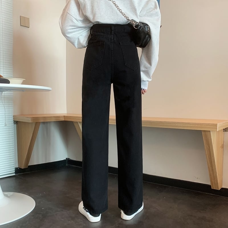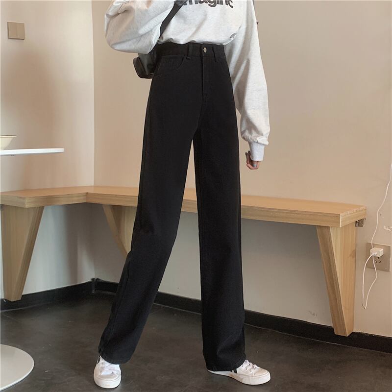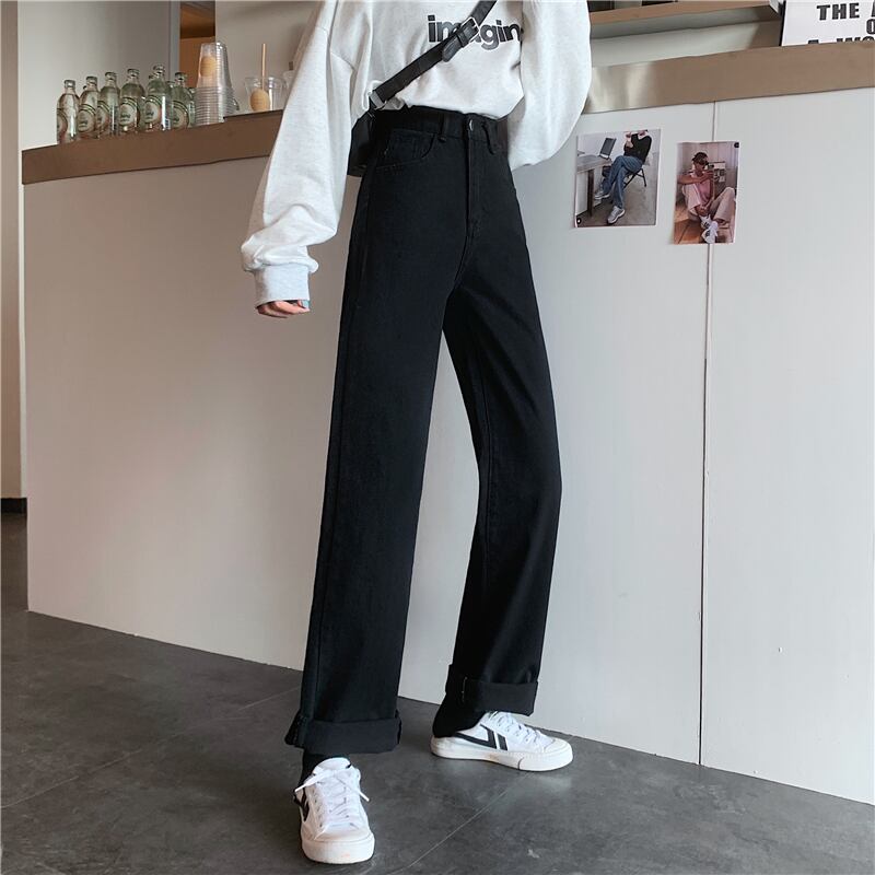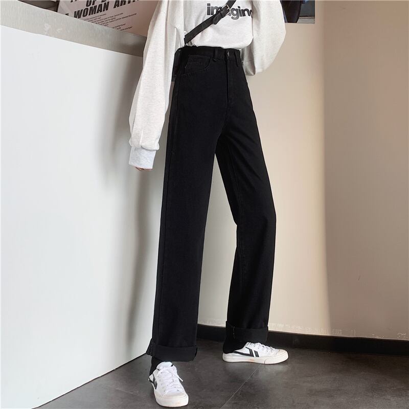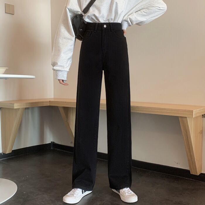 ブラックジーンズ ルーズスプリングハイウェストウェスト薄手ロングパンツ 春物 ワイドレッグ ワイドパンツ 1号婦人36847253400