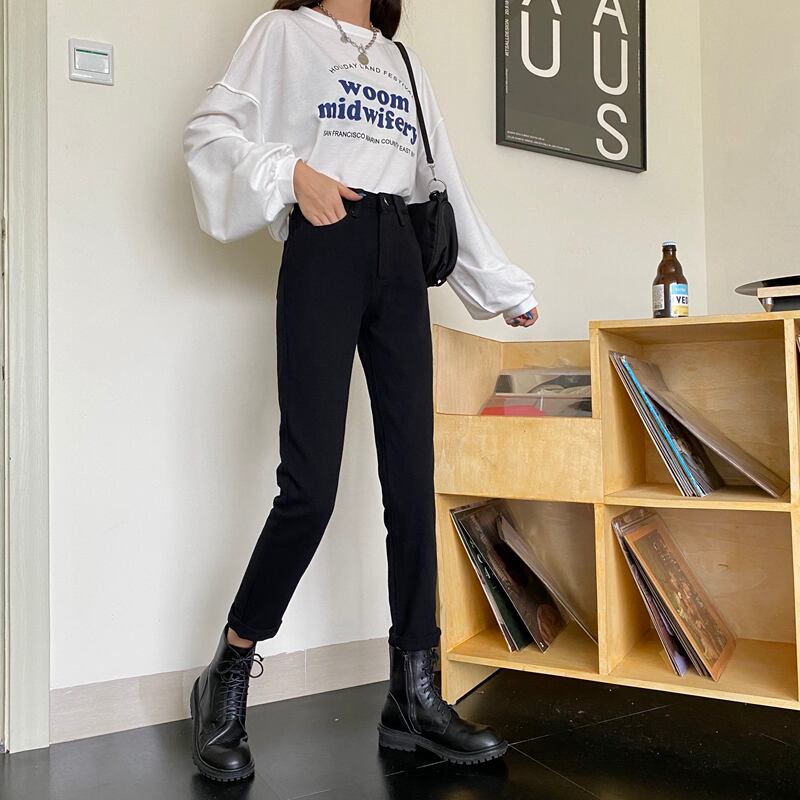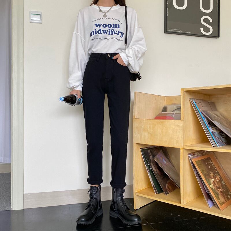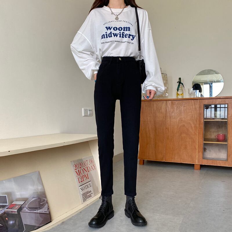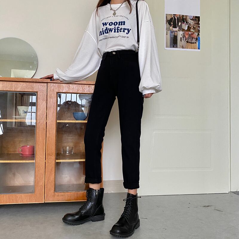 ハイウェストルーズジーンズ ブラックカジュアルパンツ 1号婦人31006307655