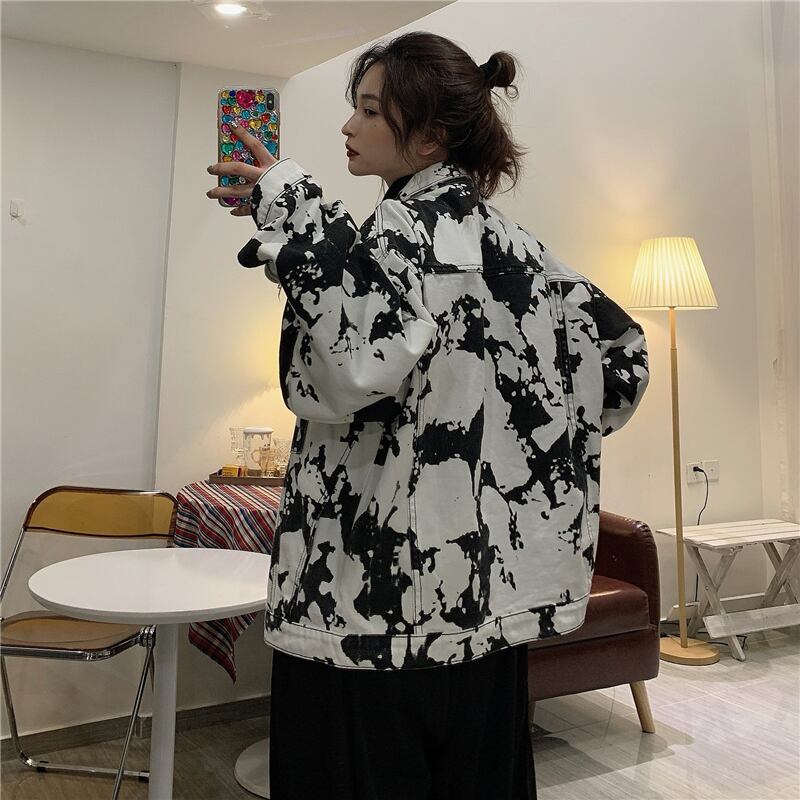 カラーパターンジャケット スプリングルーズカジュアルトップス ロング 春物 1号婦人68014436646