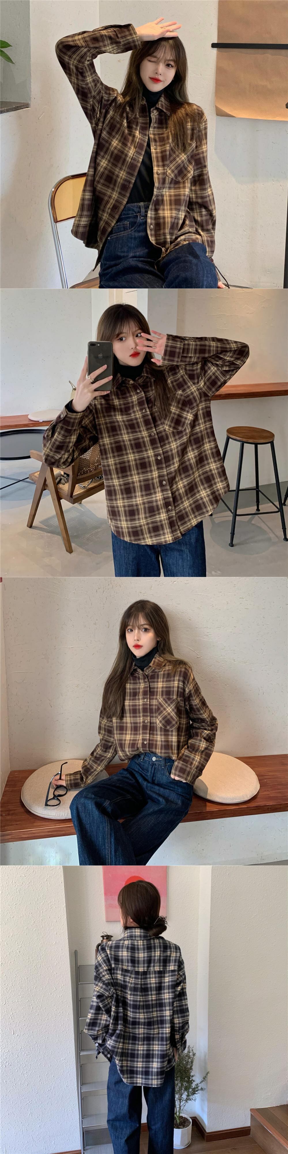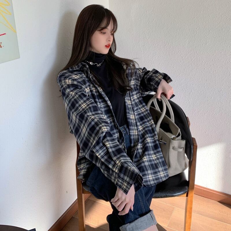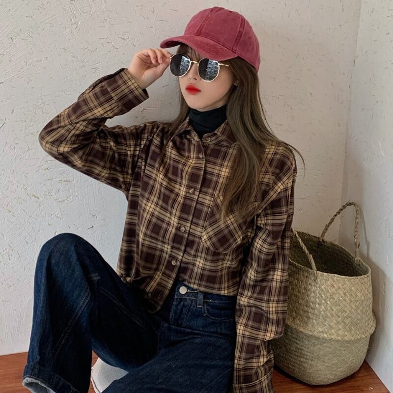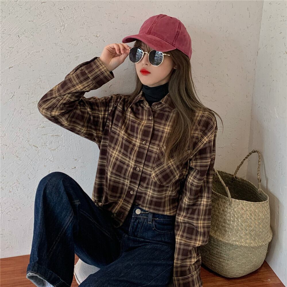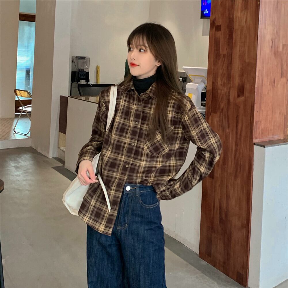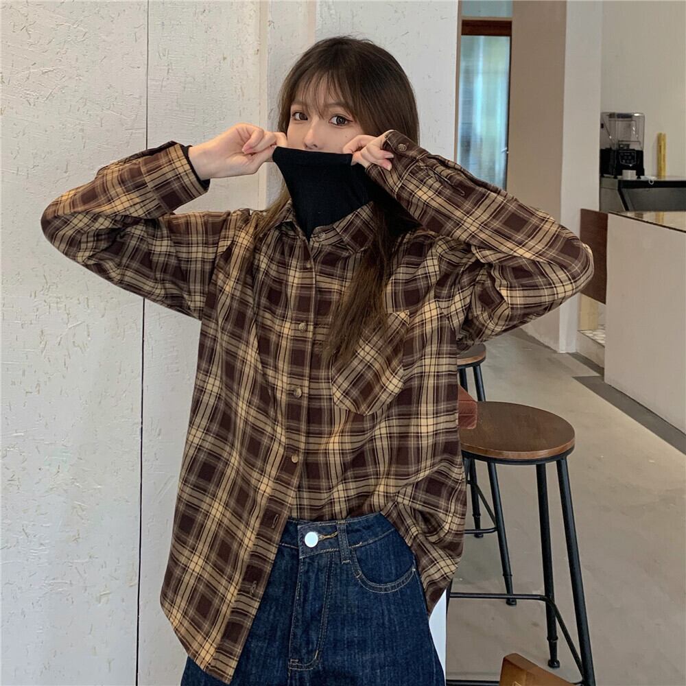 格子柄シャツ ジャケット スプリングスタンダードルーズトップス ロング レトロ 春物 1号婦人30915889002