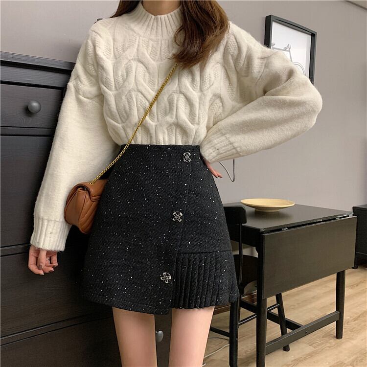 ハイウェストウェストスカート スプリング薄手プリーツAラインショート 春物 1号婦人47005371419