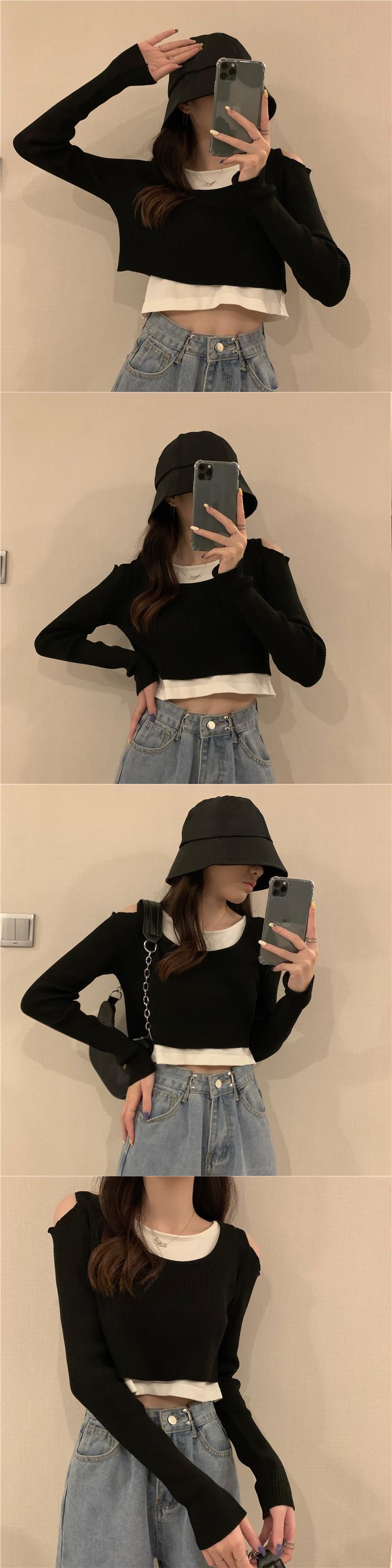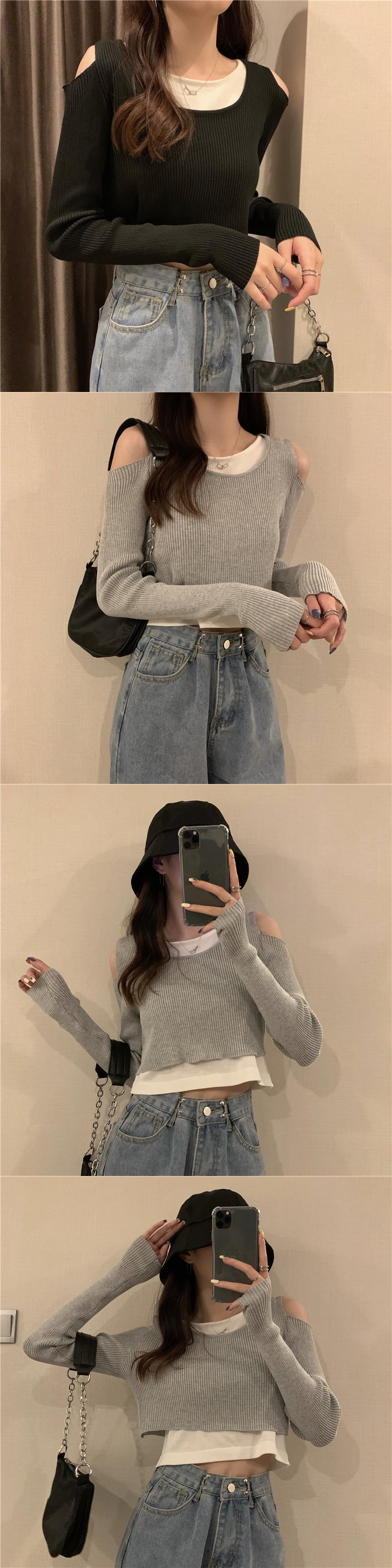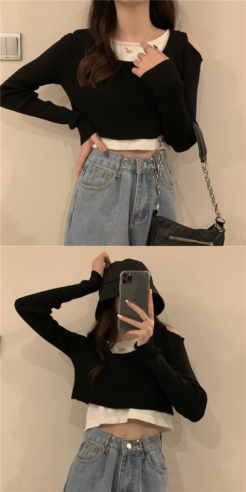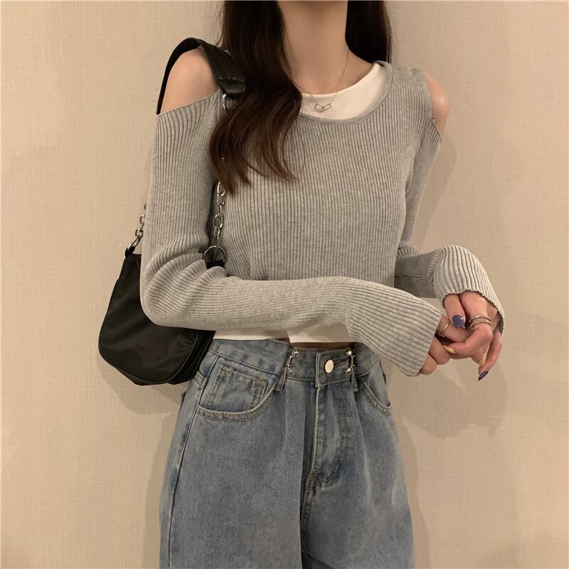 ニットセーター スプリングオータムスリムストラップレスショートトップス ロング 春物 秋物 1号婦人12464448814