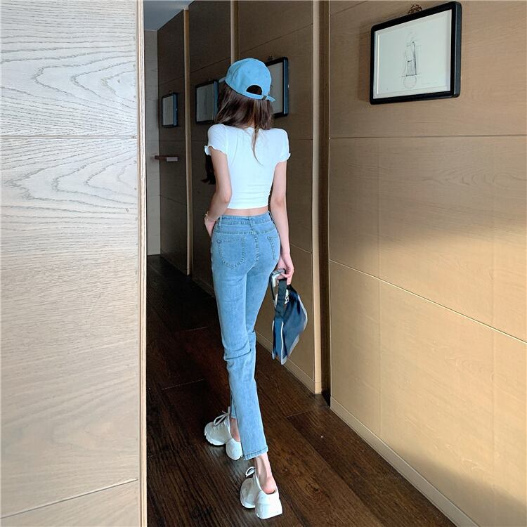 ウェストスリットジーンズ スプリングパンツ 春物 1号婦人47039577578