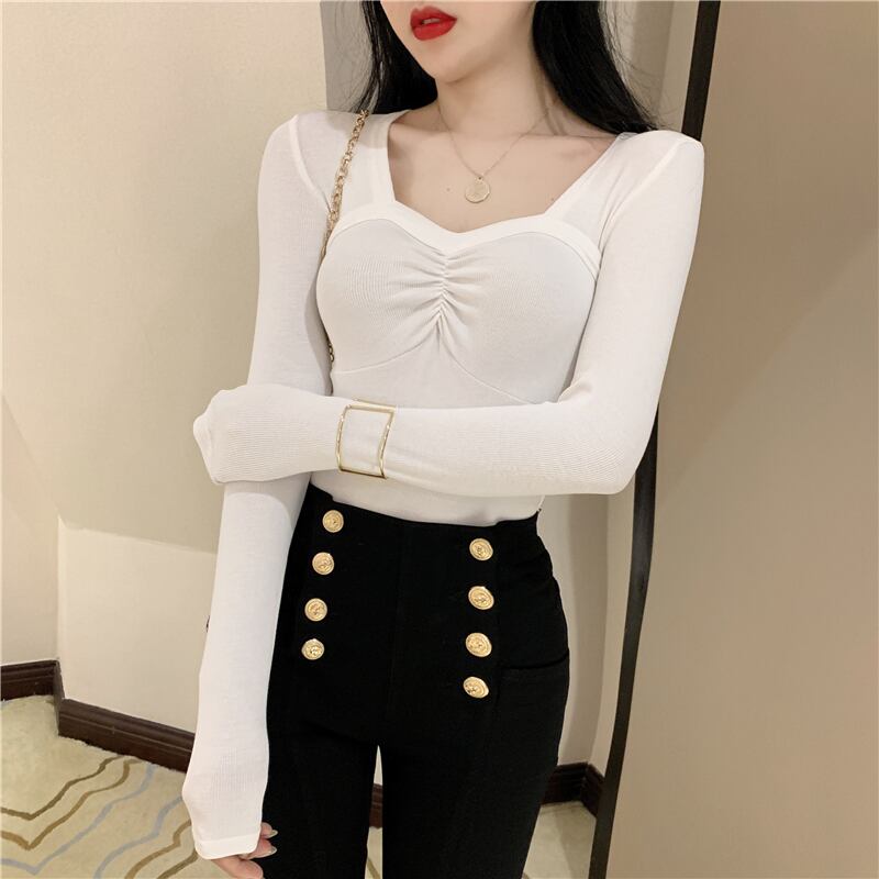 ホワイトシャツ スプリングオータムスタイルスリムTシャツ ロング 春物 秋物 1号婦人82285209153