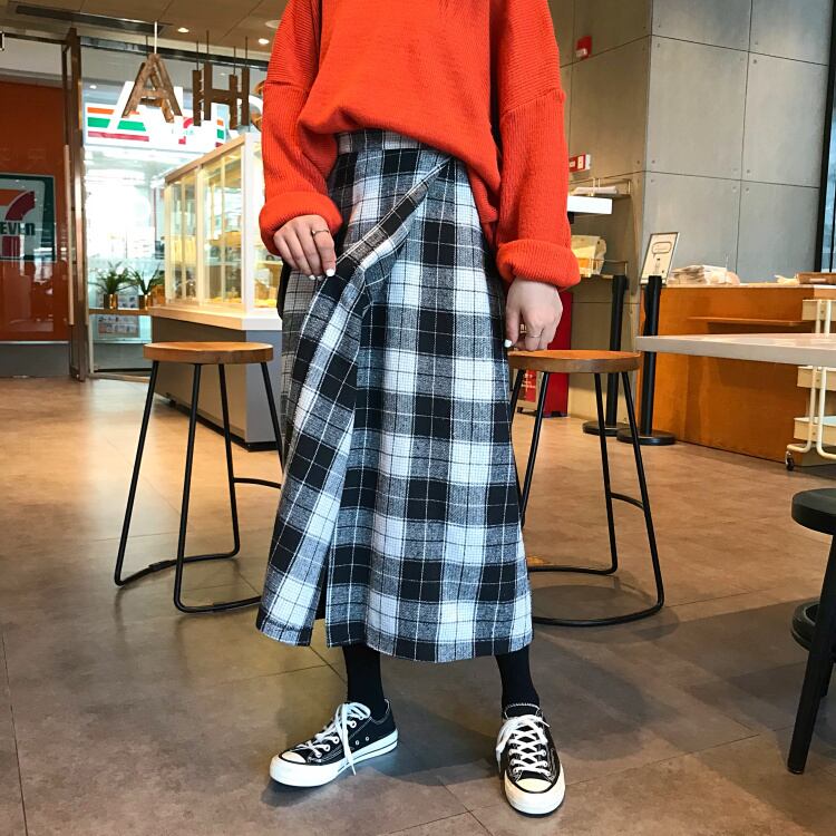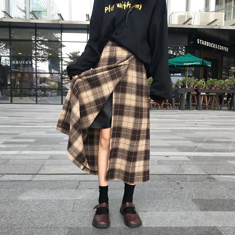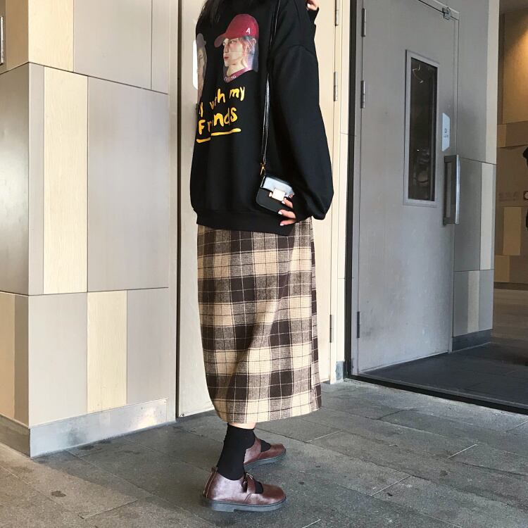 Aラインスカート スプリングオータムスタンダード格子柄薄手 レトロ 春物 秋物 1号婦人14318778853