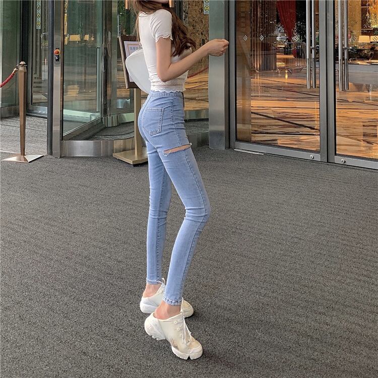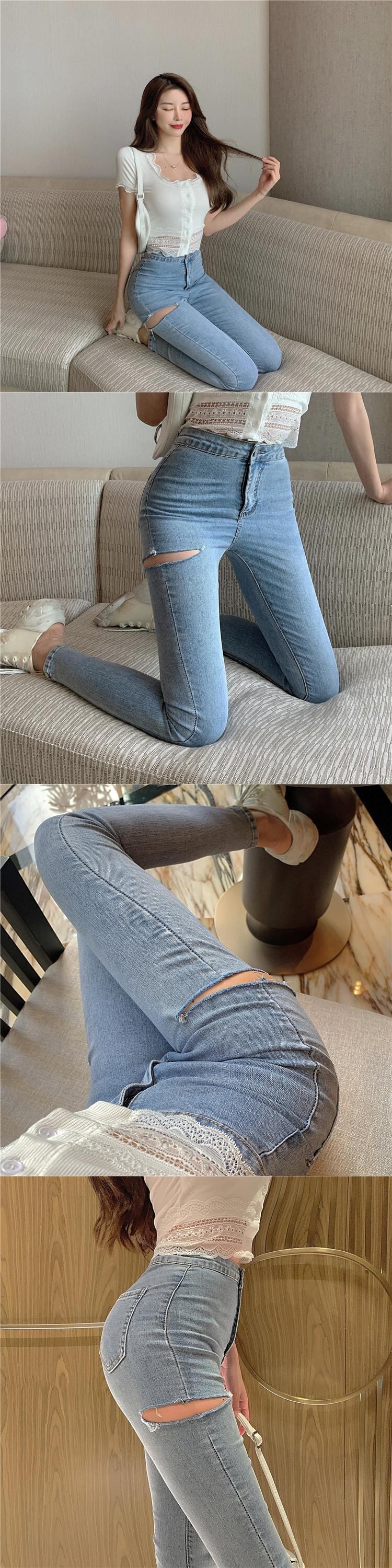 ジーンズ スプリングハイウェストウェスト薄手パンツ 春物 1号婦人34487031175