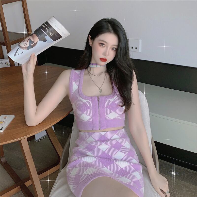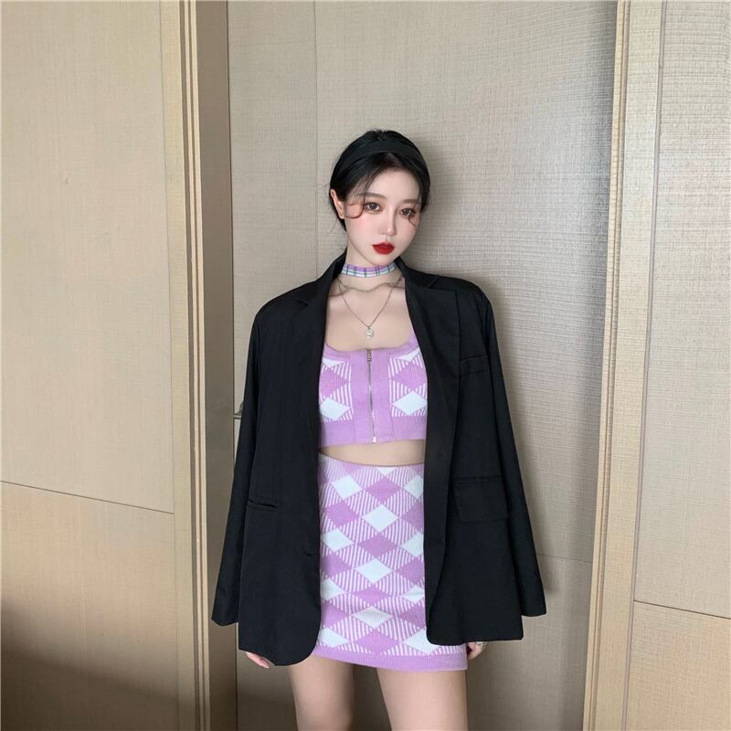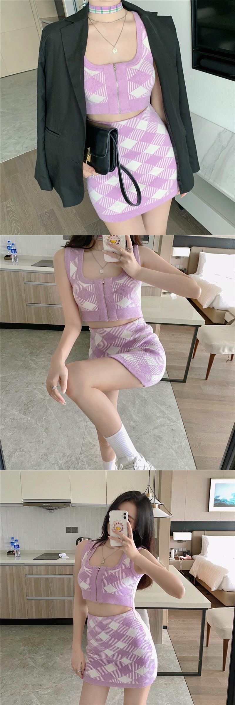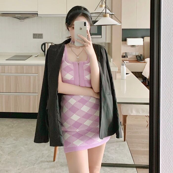 スタイルレディーススタンダードスプリング格子柄トップス ニットスカート レトロ 春物 1号婦人20589542210