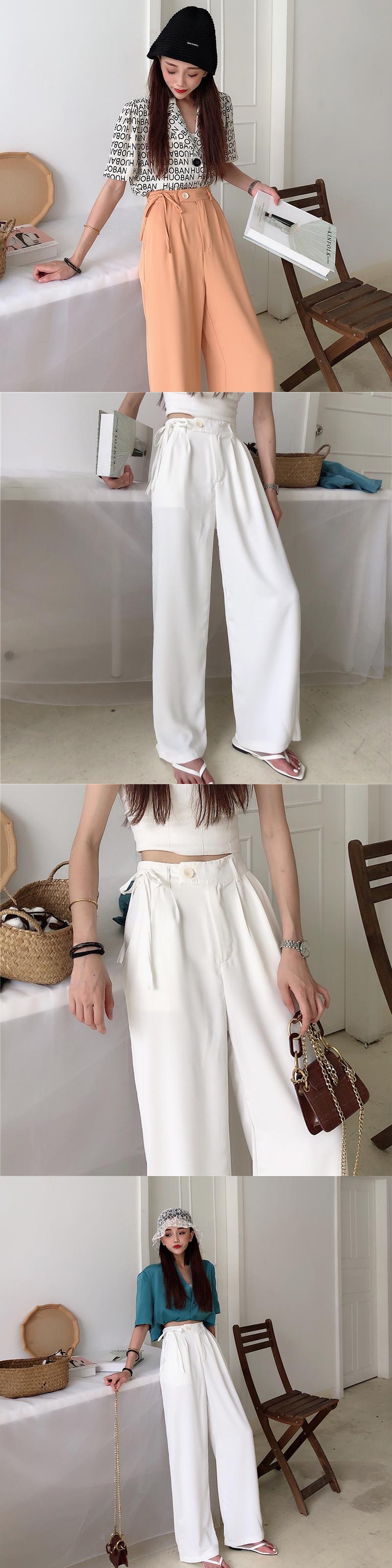 パンツ スプリングオータムハイウェスト薄手 レース 春物 秋物 レースアップ 1号婦人30825431586