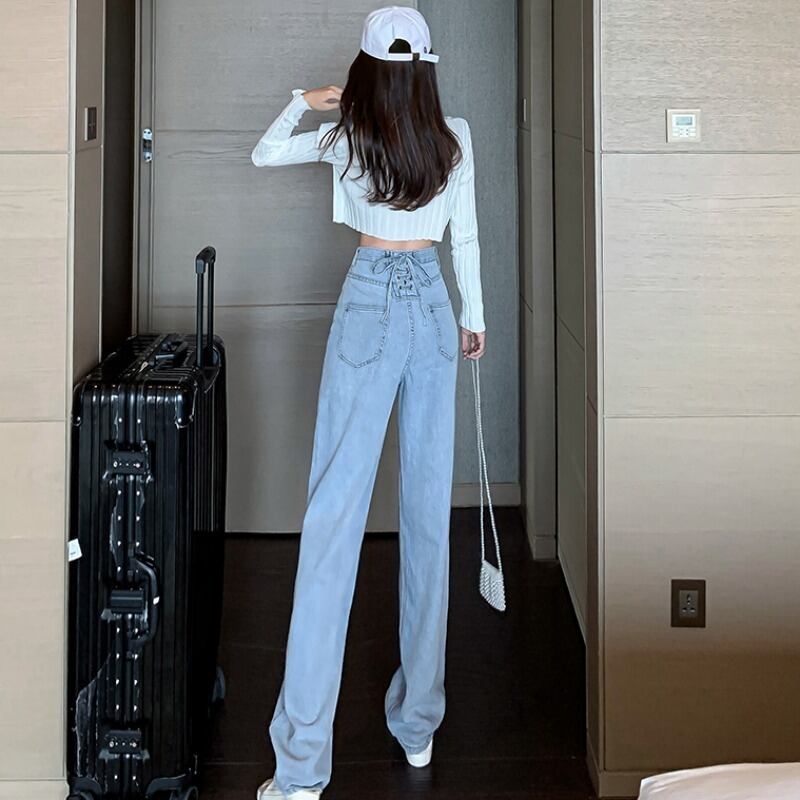 ジーンズ スプリングハイウェストウェストルーズスリムパンツ 春物 1号婦人45803542711