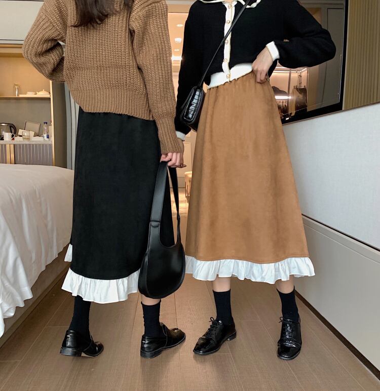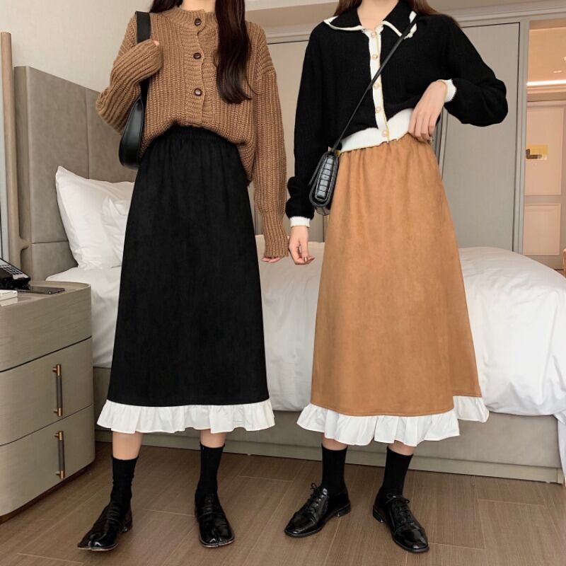Aラインスカート スプリングオータムスタイルハイウェストウェスト薄手 春物 秋物 ステッチ 1号婦人55957695702