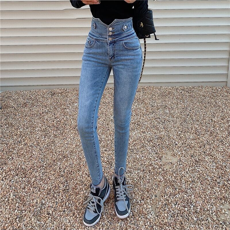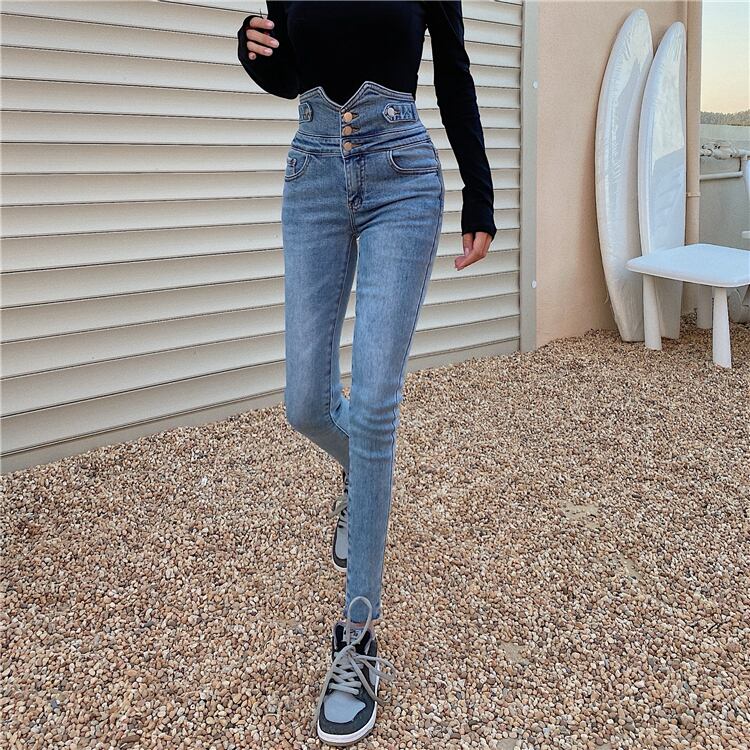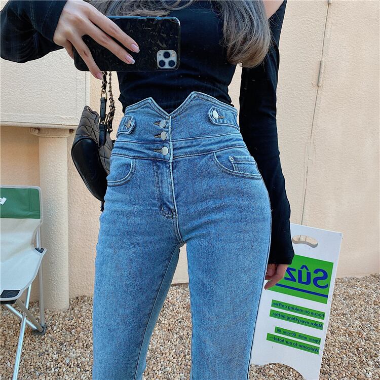 ハイウェストウェストジーンズ レディーススプリングオータム薄手スリムパンツ 春物 秋物 1号婦人34214263388