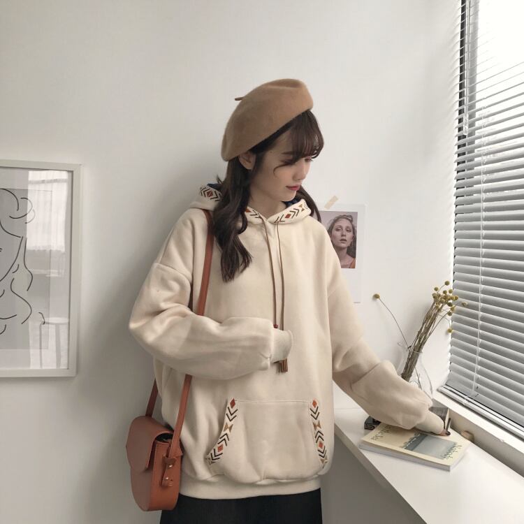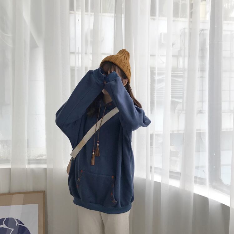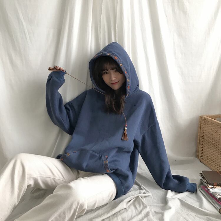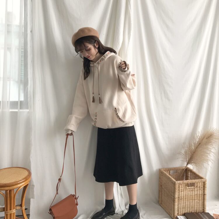 セーター スプリングオータムルーズスタイルフード刺繍ギャザーベルベットジャケット ロング 春物 秋物 1号婦人19211560124