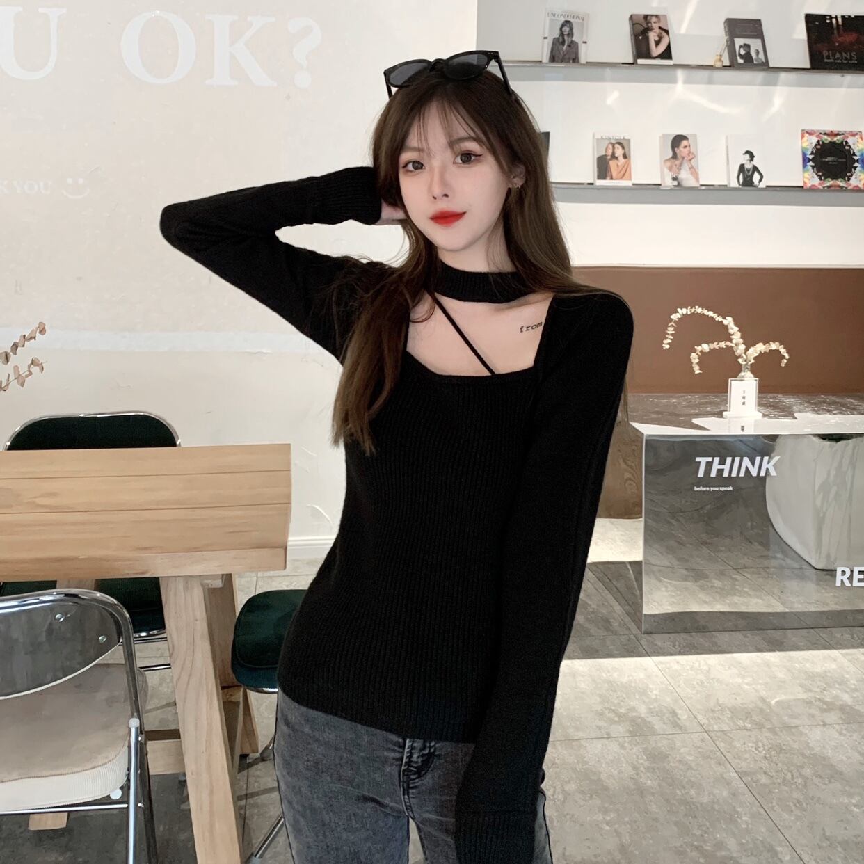 ホルターニットセーター レディーススプリングオータムトップス ロング 春物 秋物 スクウェア 1号婦人28520101817