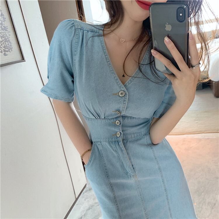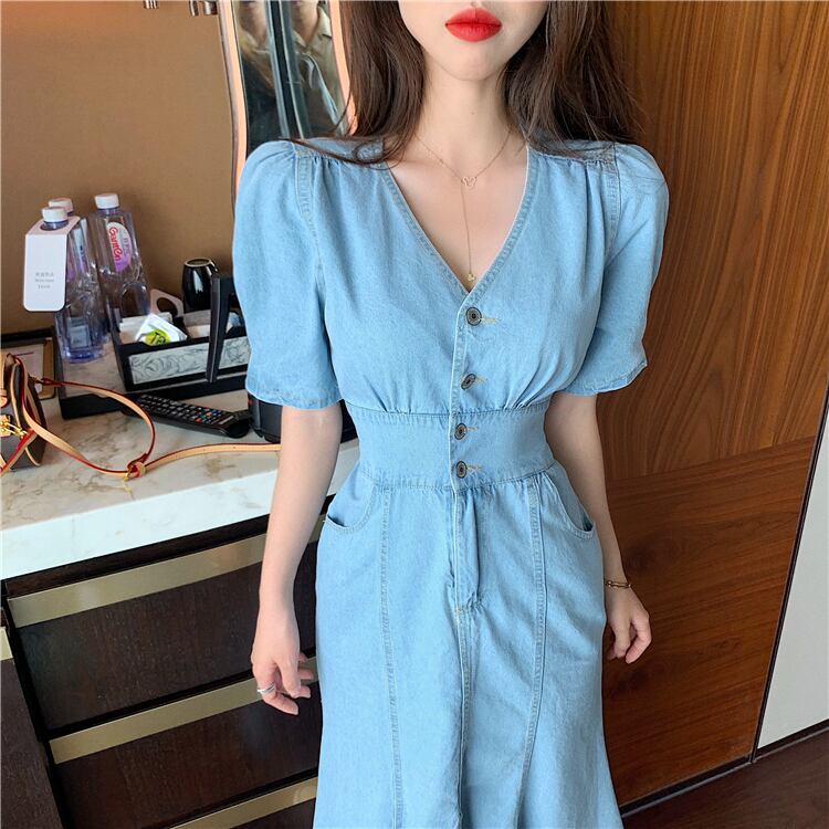 スプリングドレス スタンダードVネックスカート Aライン レトロ 春物 1号婦人68116936603