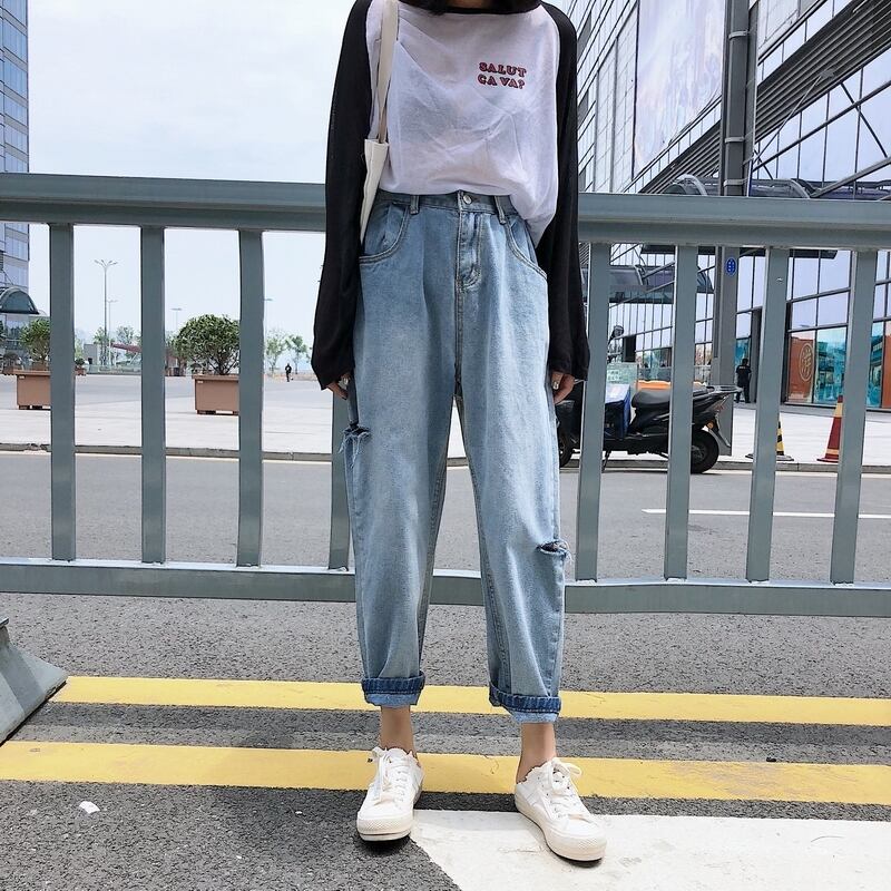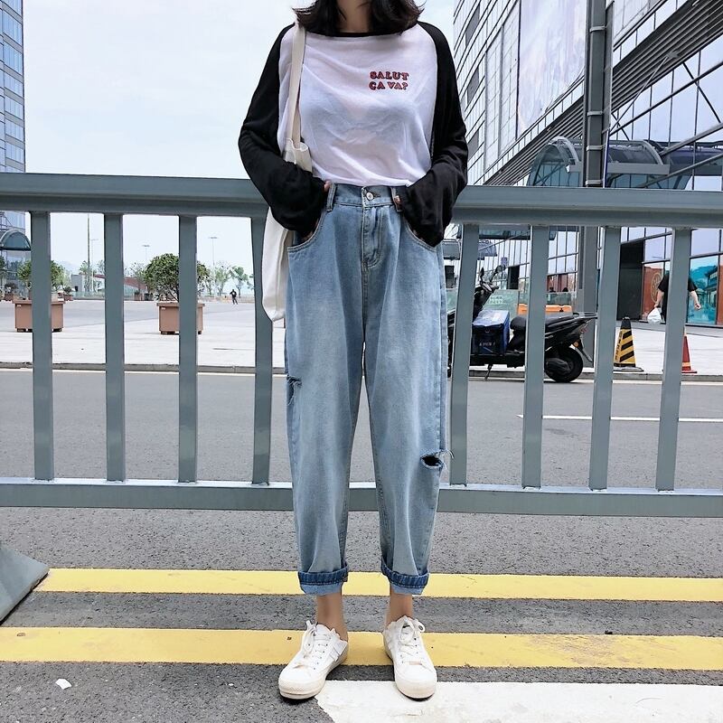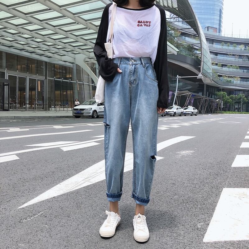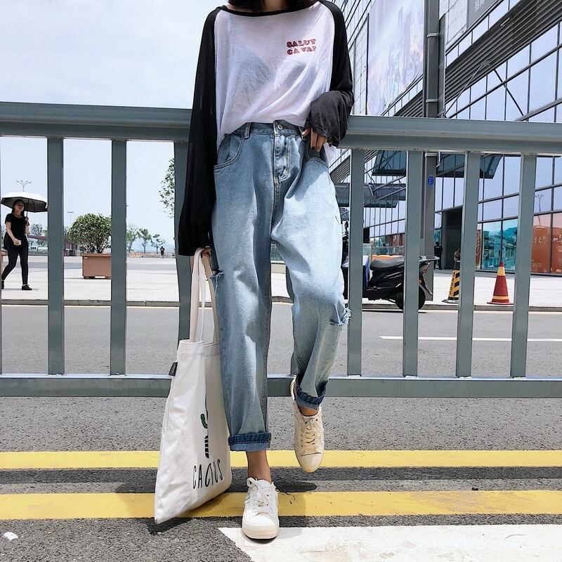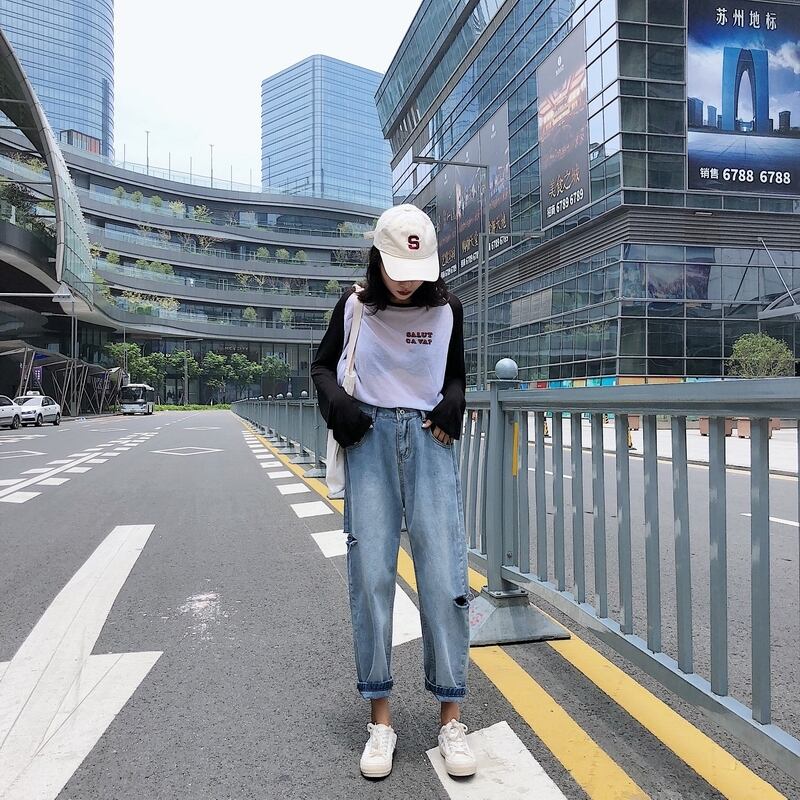ジーンズ スプリングハイウェストスリムパンツ ルーズ 春物 1号婦人78840824439