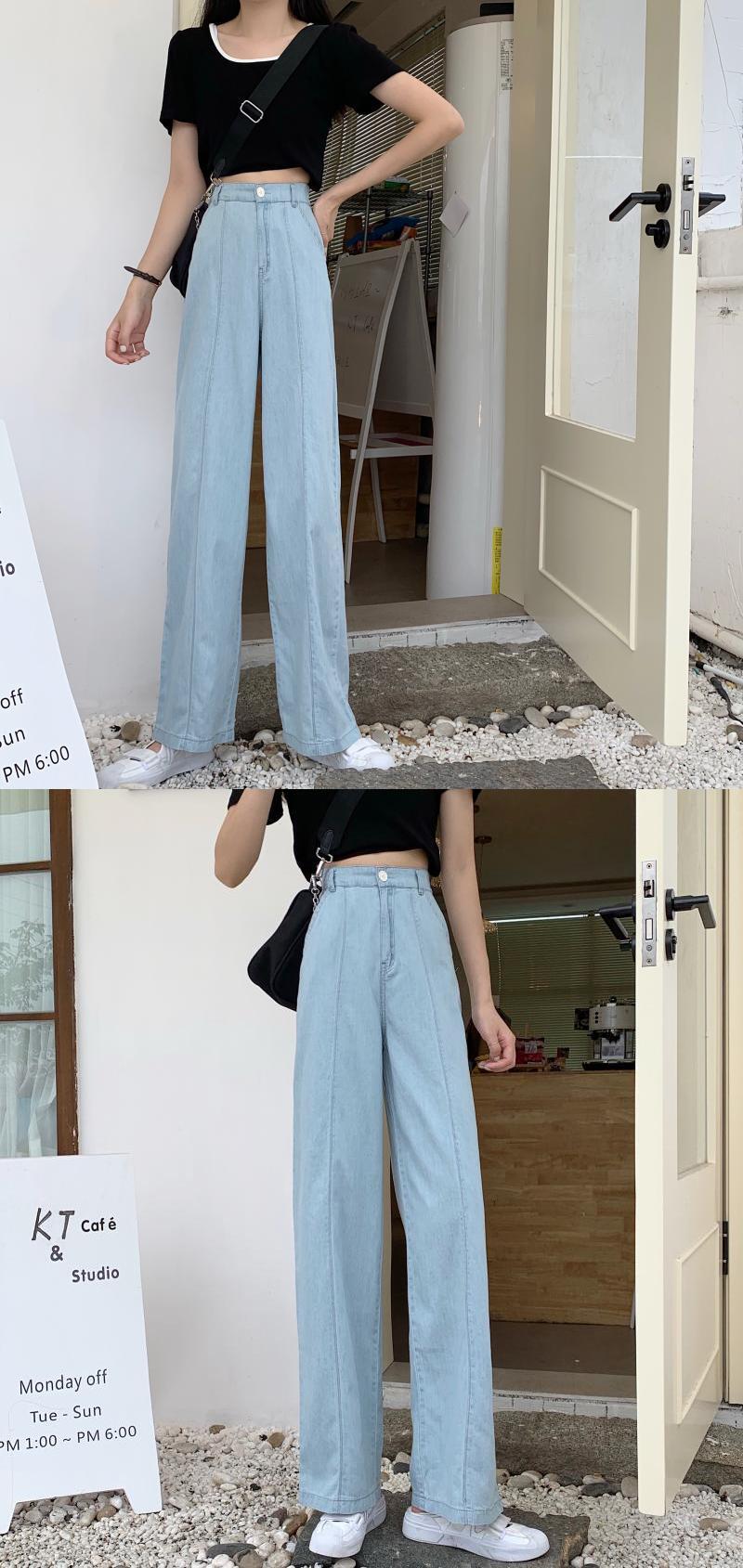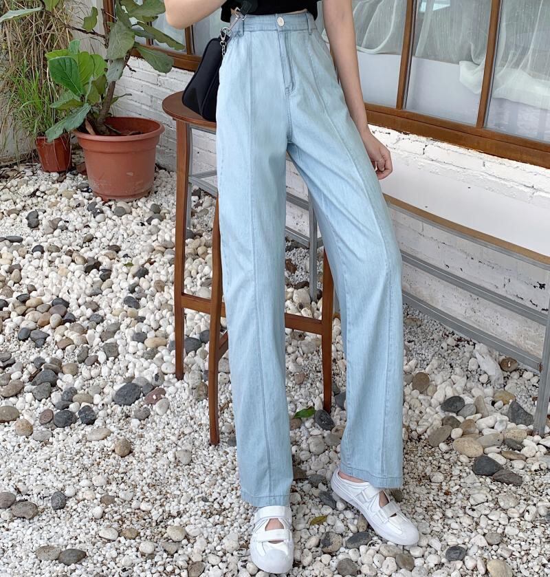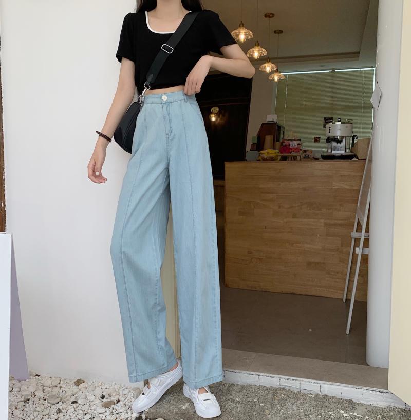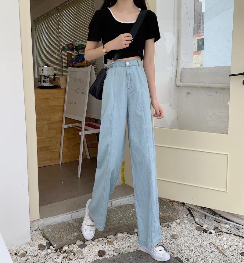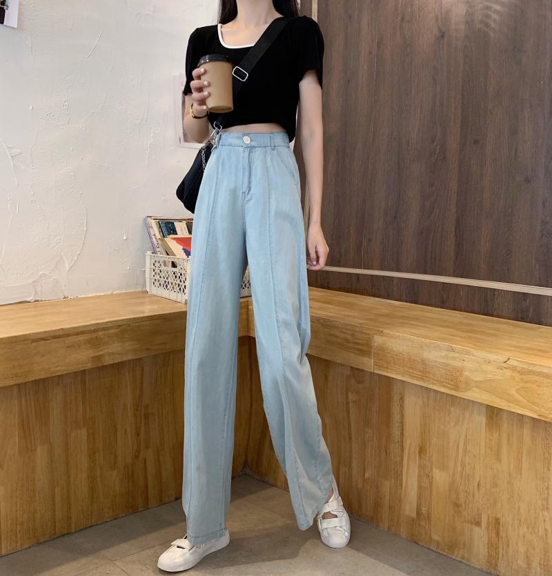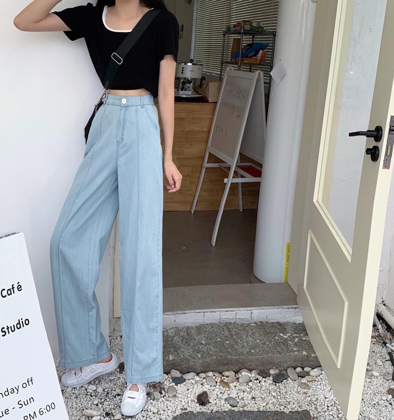 ジーンズ スプリングルーズ薄手パンツ ハイウェスト 春物 1号婦人1508626377