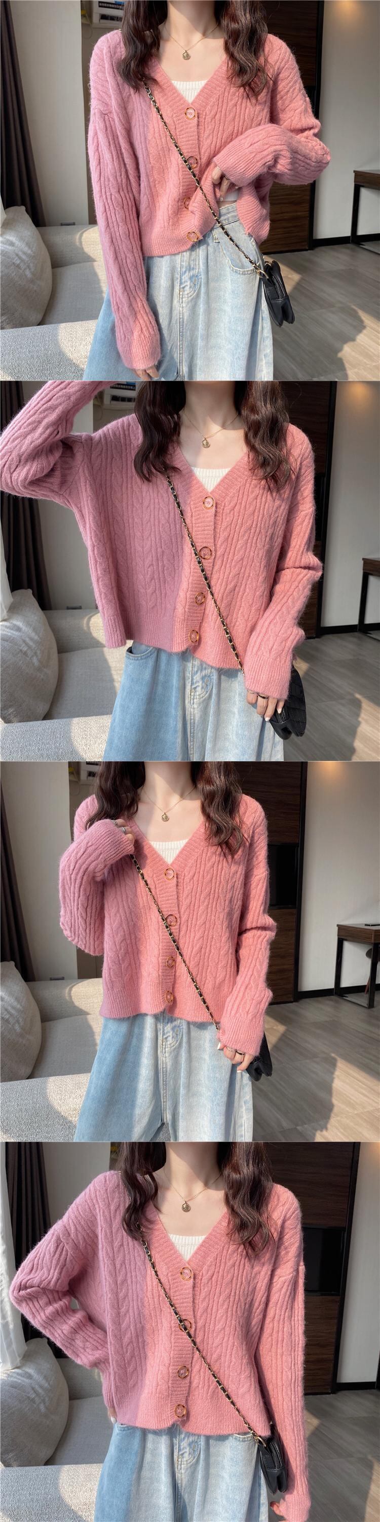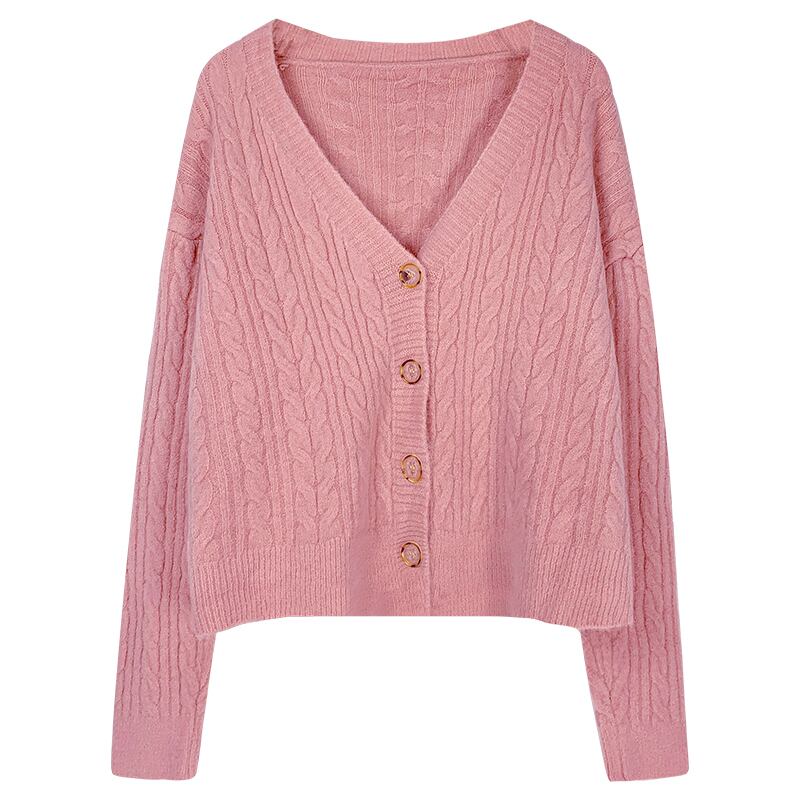 セーター ルーズジャケット オータムウィンターニットカーディガントップス ピンク 秋物 冬物 1号婦人77792615021