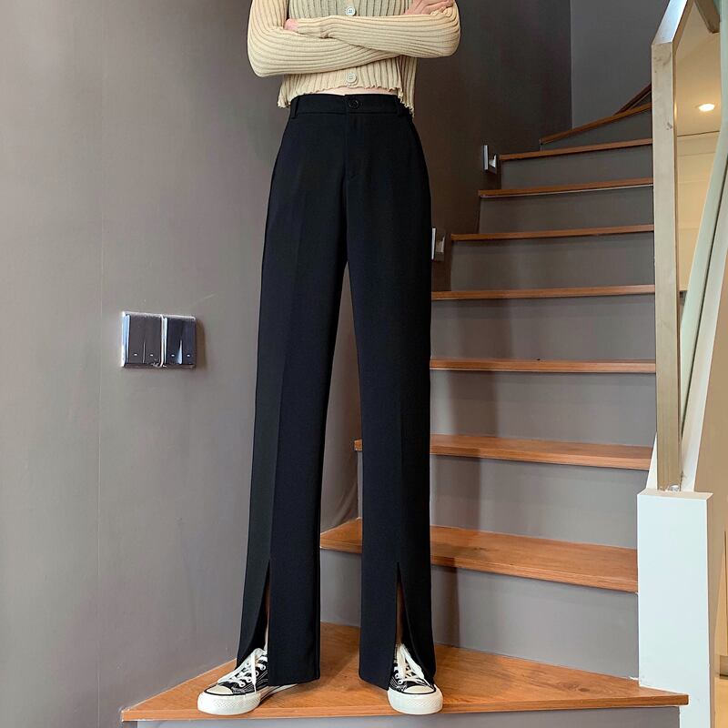 ブラックパンツ スプリングハイウェスト薄手カジュアルロング 春物 1号婦人89226991729