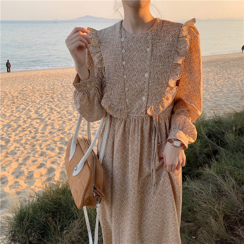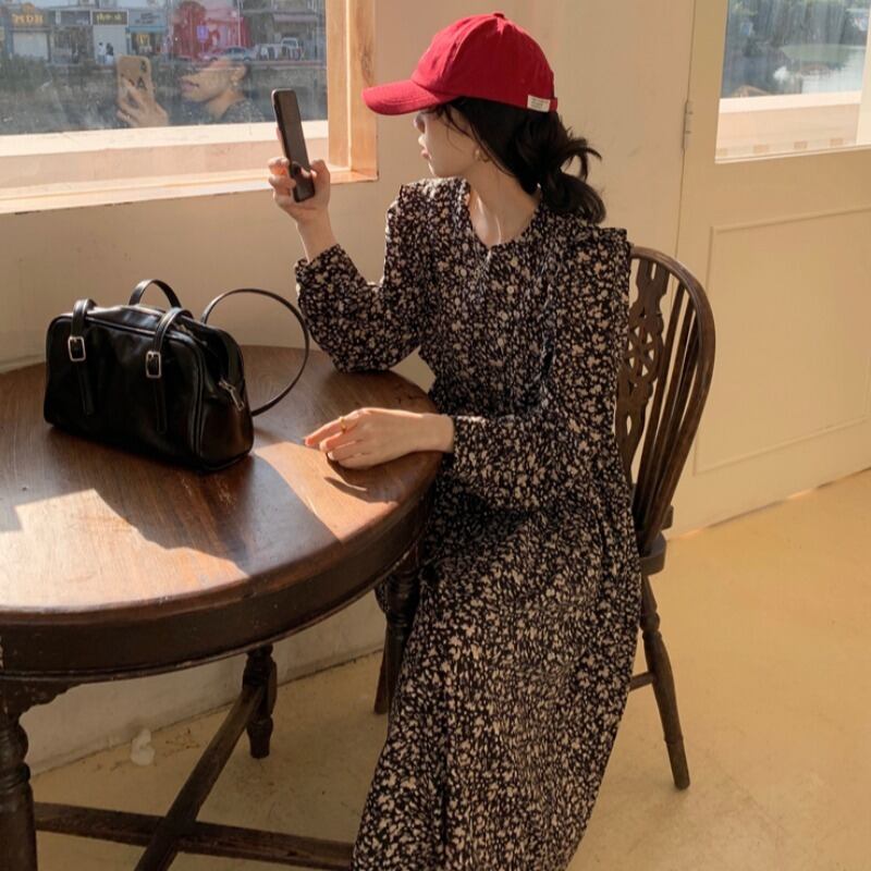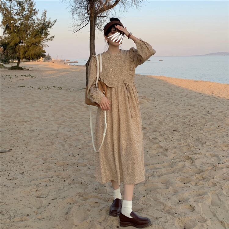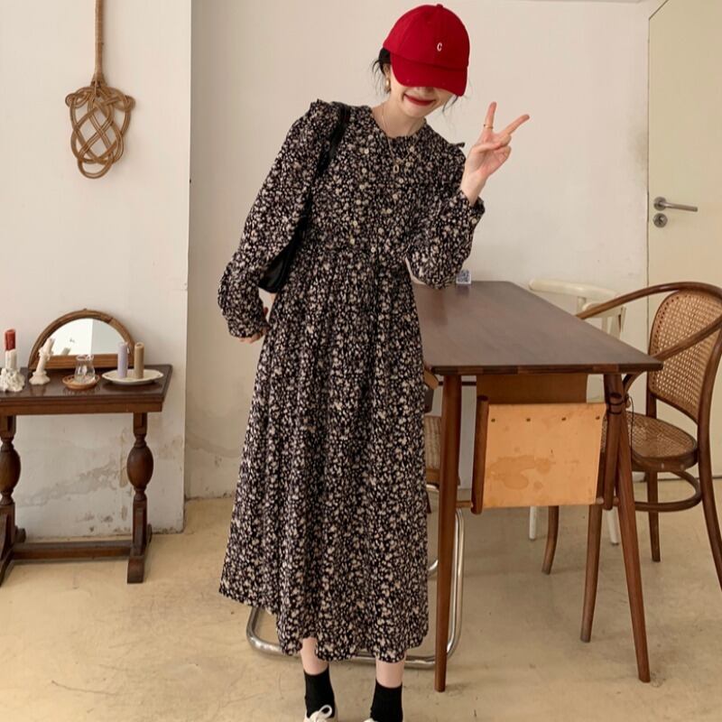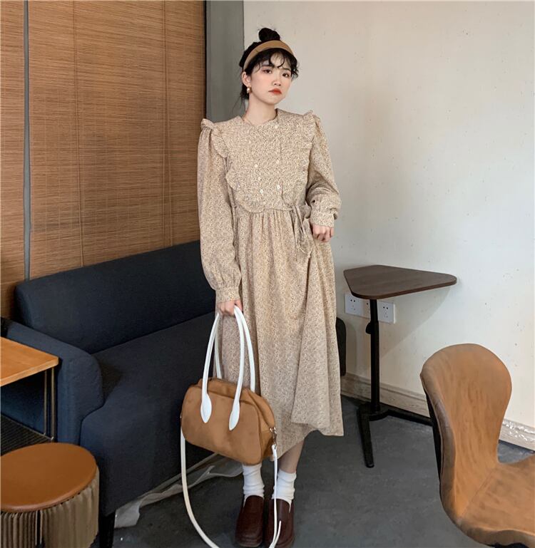 フローラルドレス スプリングオータムウェストAラインスカート 春物 秋物 花柄 1号婦人99932893087